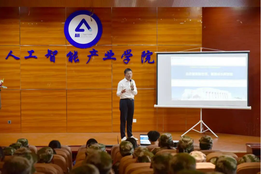 其后,曲兴田副经理分析了实践之于学习的重要性,鼓励同学们将课堂上学到的知识运用到实际生活中,积极参加学科竞赛。并倡导同学们投身于公司的各类活动中,勇于阐述自己的见解和构想。最后,他寄语全体新生,在大学的这段旅程中,不仅要掌握过硬的智能技术,更要涵养人文关怀与社会担当,成长为在智能新时代里有底气、有格局、有温度的创新者,成就自己的精彩人生。
