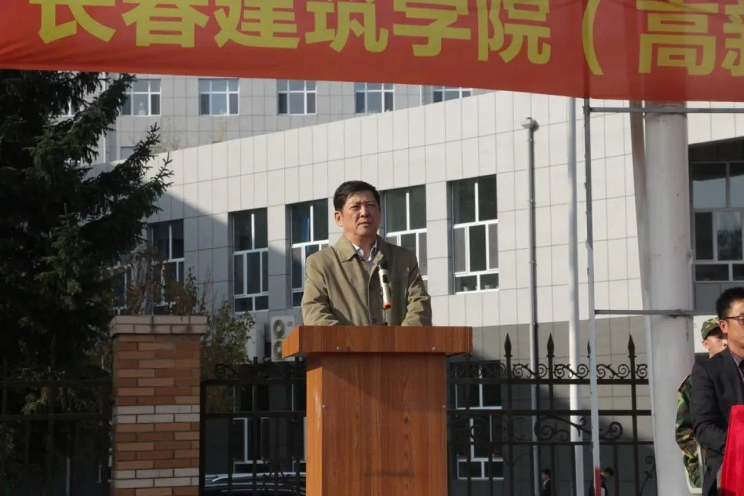 再次,吉林军分区训练团副团长丁振同志向同学们强调了军训的重要意义,要求全体新生发扬吃苦精神,增强组织性和纪律性,严格遵守军训期间的相关规定;并代表全体军训教官郑重承诺,认真履行教官职责,保证安全顺利地完成军训任务。