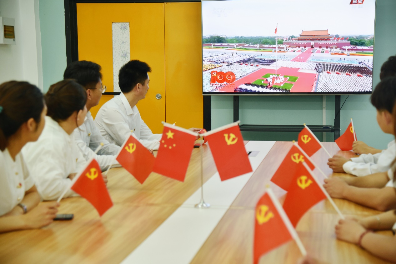 7月1日上午,庆祝中国共产党成立100周年大会在北京天安门广场隆重举行。中共中央总书记、国家主席、中央军委主席习近平同志发表重要讲话。全体教师党员、员工预备党员、青年马克思主义理论学习研究社、学习筑梦班全体成员以及全体入党积极分子,在教室集体收看大会实况。其他师生通过电视、网络、广播、手机客户端等多种形式收听收看了大会现场直播。