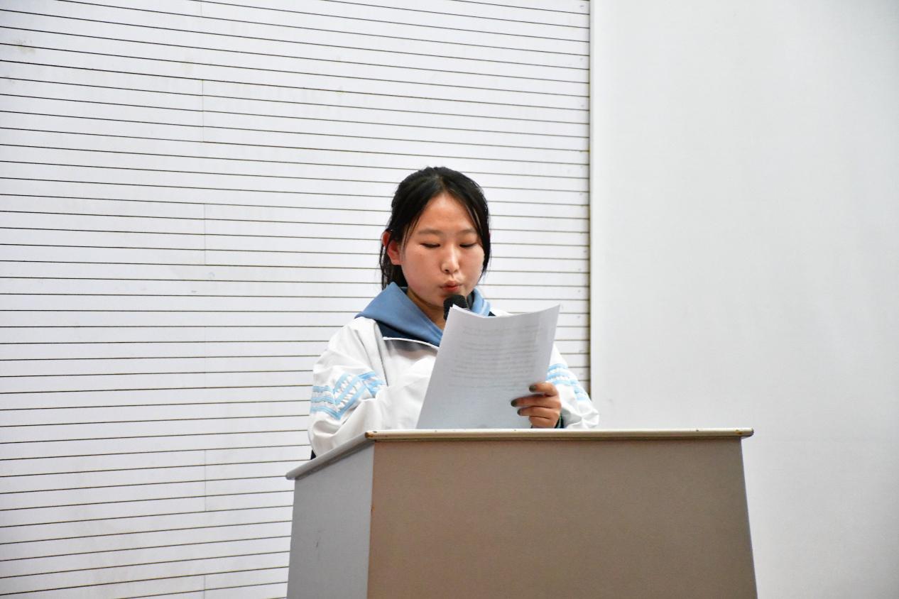 人工智能专业2101班的徐梦楠同学作为新生代表发言,她首先回顾了开学近一个月的经历,直言自己十分感动于老师和学长学姐们的热情的帮助与耐心的讲解,也表达了全体2021级新生对未来坚定向前,立志不断进步的决心。