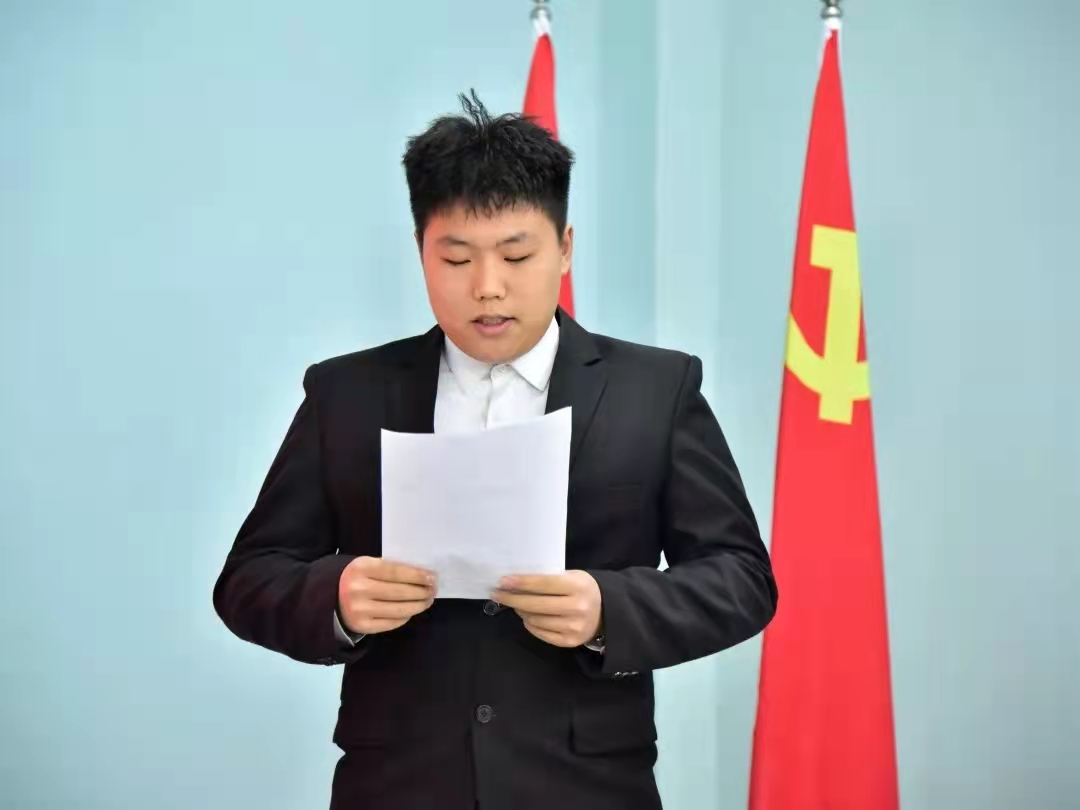 会议严格按照党组织接收预备党员的程序进行。首先,全体成员奏唱国歌。随后,张迪、王涵、杜新宇、李成坤、孙振甲、王晓宇、张宇七名同志宣读了《入党志愿书》,围绕对党的认识、入党动机、本人履历、家庭和主要社会关系情况、现实表现,以及需向党组织说明的问题等方面进行详细汇报。同时,客观的表述了在发展对象期间的思想状况和学习工作情况。宣读结束后,入党介绍人介绍发展对象有关情况,并对其能否入党发表全面客观、公开公正的意见和建议。随后,林斌书记代表支委会报告对发展对象的审查情况,全体与会党员同志发表意见,并对发展对象能否入党进行充分讨论。经大会充分讨论,与会具有表决权的三名正式党员进行无记名投票表决,一致同意接受张迪等七名同志成为中共预备党员。