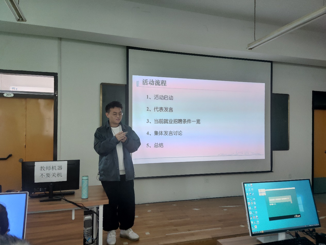 会议伊始,郭老师指出了目前老员工所面临就业问题的重点和难点,让同学们清晰的认识到职业生涯规划的重要性,促使同学们认真思考自己的目标及规划。
