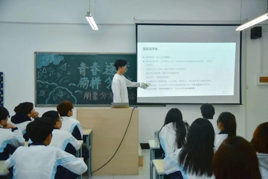 接下来,大数据2001班张路浩讲述国家奖学金的获得方法以及国家励志奖学金的评判标准,他重点强调了国家奖学金的评判标准与学习成绩息息相关,使同学们更加认识到学习的重要性。