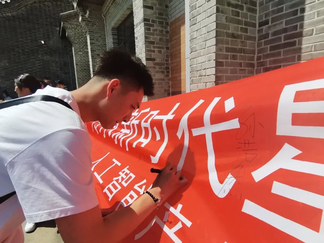 在活动现场,志愿者们将写着“庚续红十字精神,传承新时代星火”的横幅在食堂门口拉开,立即引起大批同学们的围观。一切工作准备就绪后,志愿者们向围观的同学们科普有关世界红十字日的相关内容。在志愿者们的引导下,同学们排好队伍,有序地在横幅上签下自己的名字。志愿者们还邀请路过的同学们参加,并且耐心的向同学们介绍活动的意义所在,来往的同学们听到后非常配合,纷纷上前进行签名。洋洋洒洒的名字展现出了同学们要努力学习红十字精神的信念。每一个签名都好似投入烈火的干柴,在大家的共同努力下,红十字精神定会星火相传。