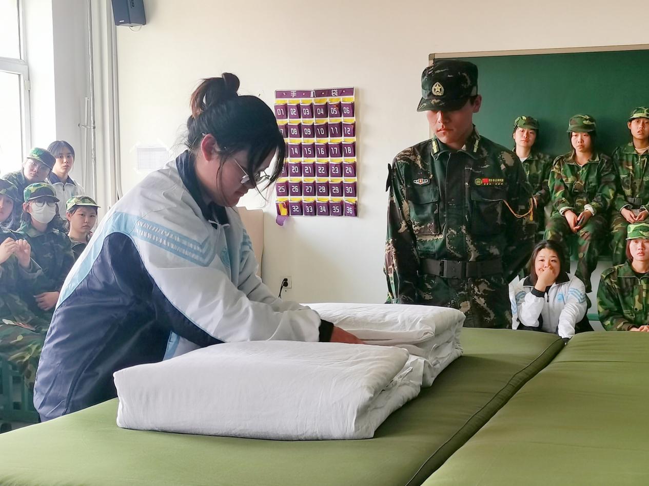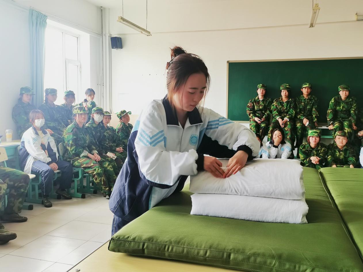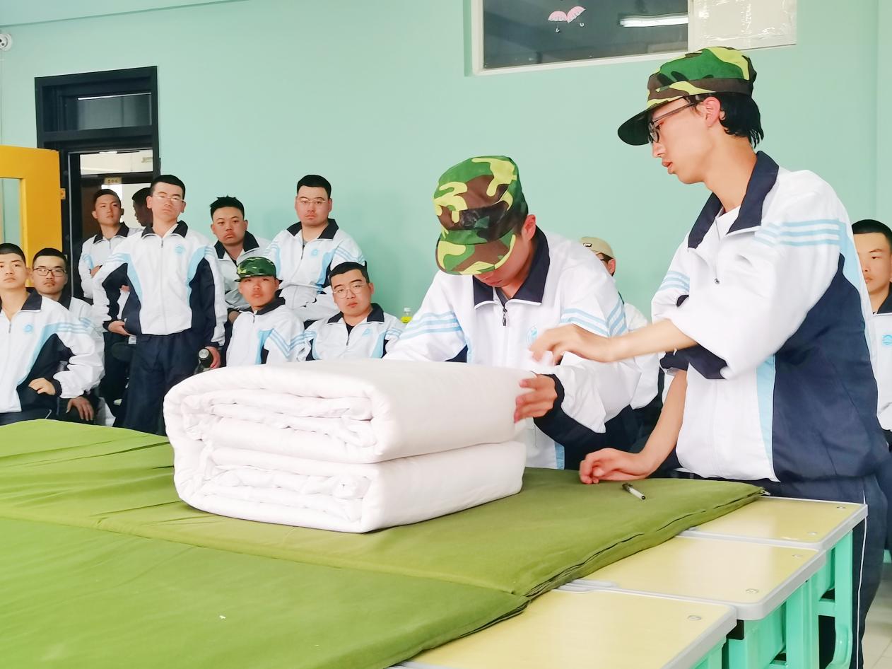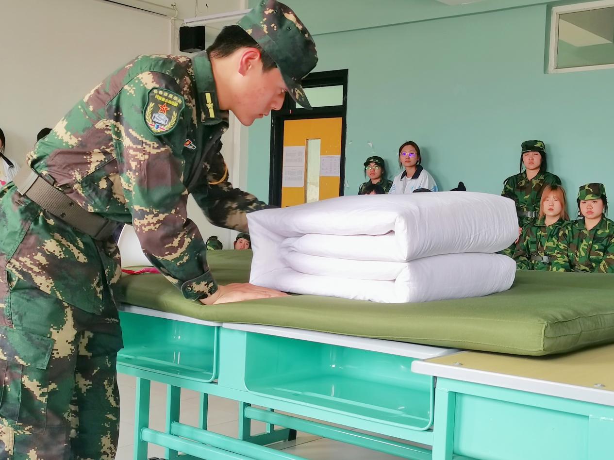 现场,教官为同学们耐心的讲解叠被技巧