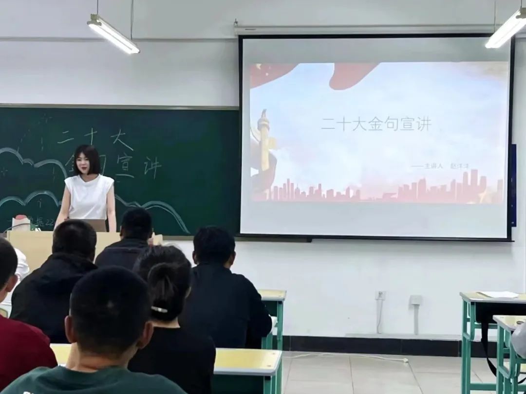 为深入学习贯彻党的二十大精神,使同学们坚定文化自信,学习创新思想。公司开展“党的二十大金句宣讲”活动,22级全体员工参加。