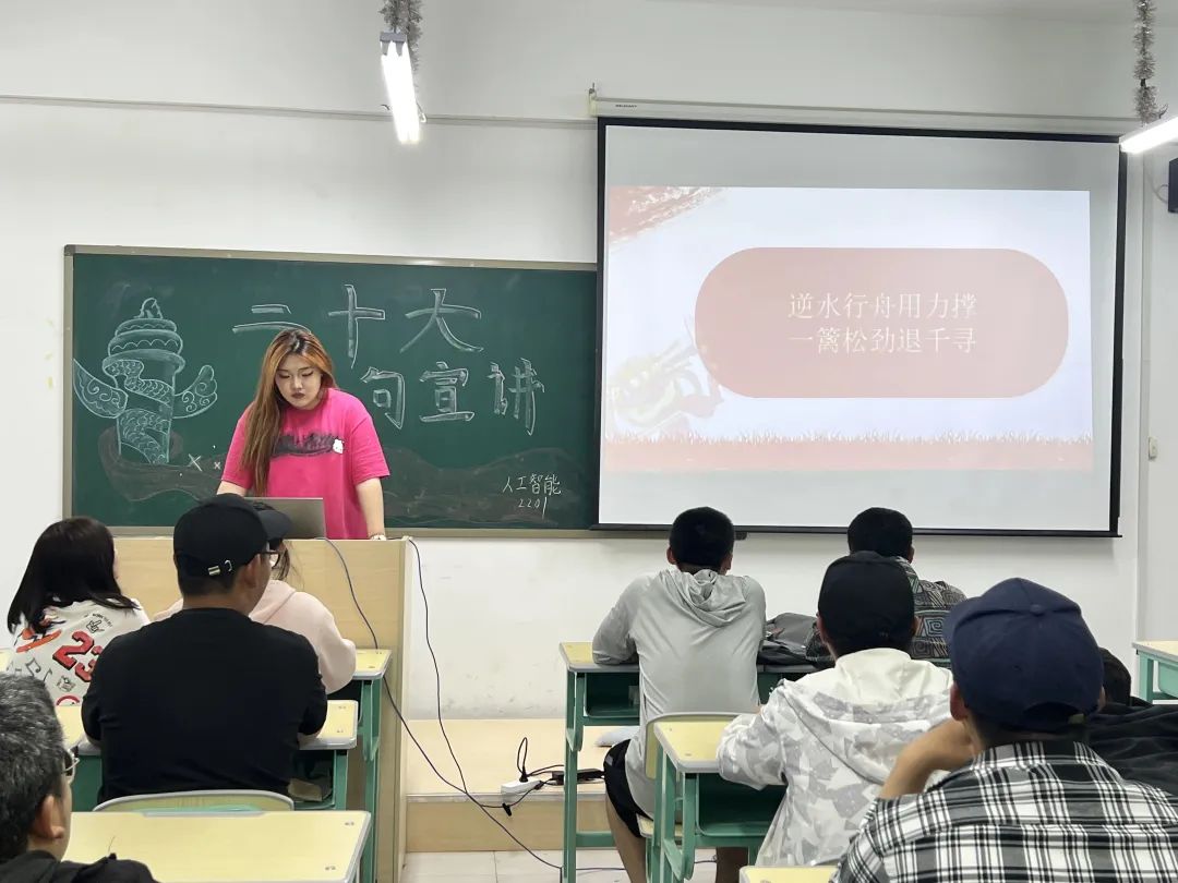 为了深入学习贯彻党的二十大精神,更好地团结引领全院青年听党话、跟党走。人工智能产业公司院组织开展“党的二十大金句宣讲”活动,22级全体员工参加。今日宣讲的金句新时代的伟大成就是党和人民一道拼出来,干出来,奋斗出来的。中国特色社会主义为什么好,归根到底是中国化时代化的马克思主义行。