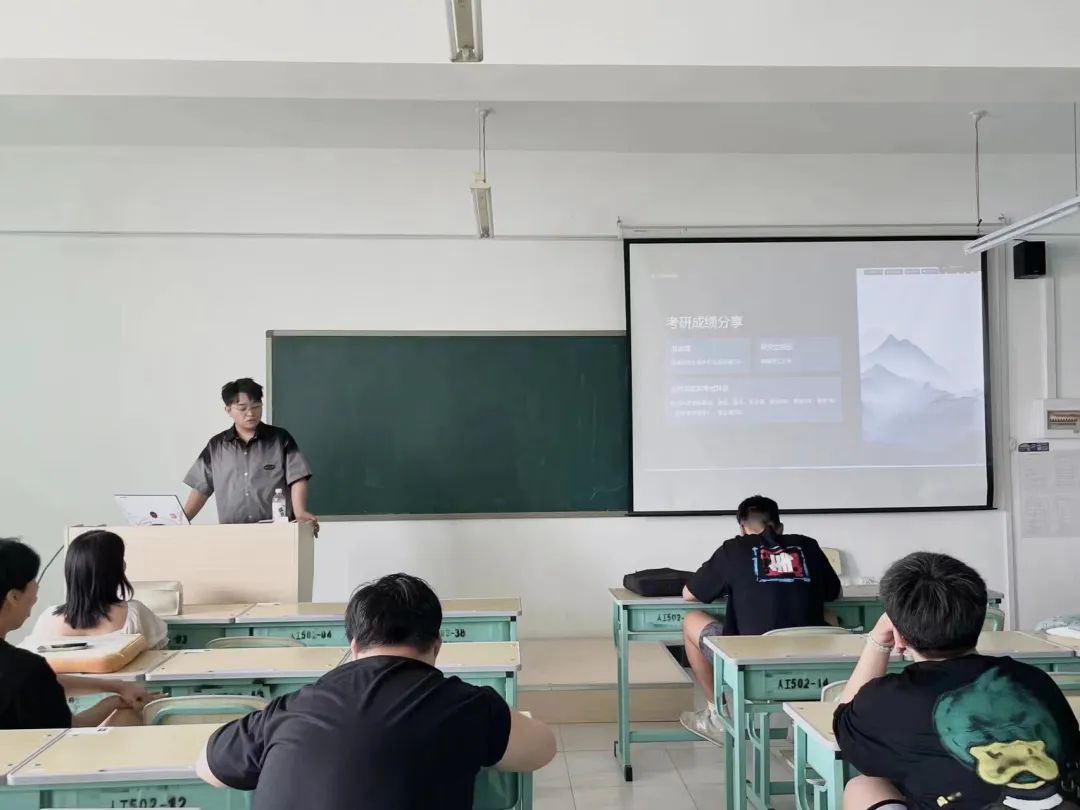 会议开始,吴占正学长结合自身经历向学弟学妹们分享了考研成功上岸的心得与经验,并详细介绍了在备考期间应注意的相关事项,提醒同学们要提前做好考研规划,合理安排学习时间,认真抉择好考研专业方向。