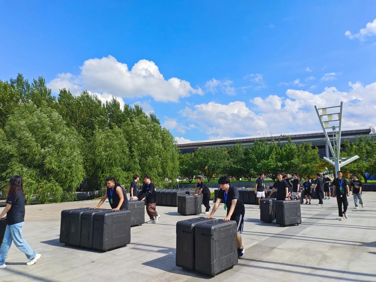 在无人机集群表演前期,吉林省翼启飞科技有限公司派专业人员对志愿者们进行了集中培训,包括对2023架无人机进行摆放以及试飞、电池的安装以及回收、对个别出现问题的无人机进行信号调节等,公司的六名志愿者们利用专业所长学习无人机等相关知识,进行课外拓展,积极完成志愿者的工作任务,时刻牢记着“奉献、友爱、互助、进步”的志愿精神,秉承着虚心学习,服务于人的理念,用亲切的微笑和细致的服务温暖着会场的每个角落,为空天盛会增添亮丽色彩。
