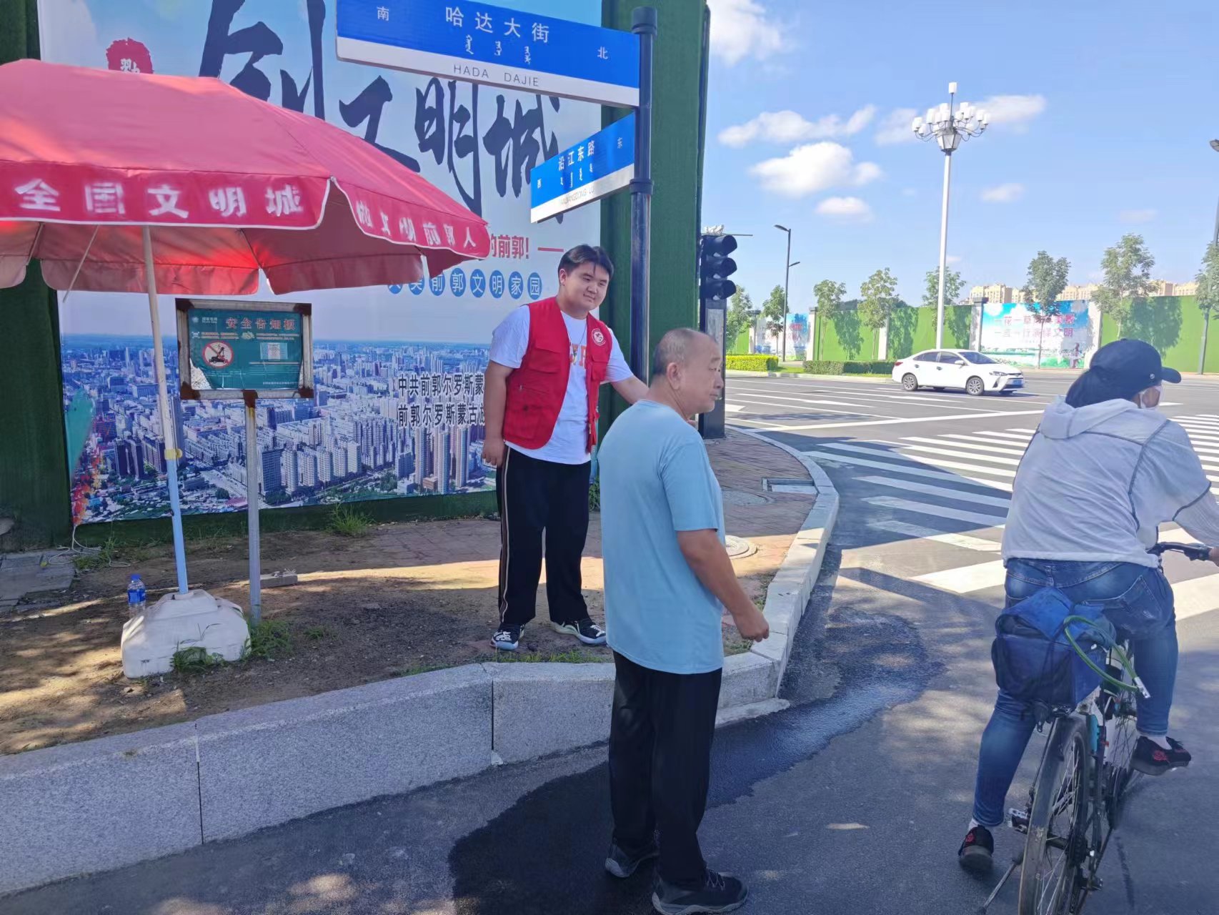 吉林省松原市前郭县担任携手共建文明城志愿者,主要负责十字路口交通疏导,对来往的行人及车辆的不文明现象或违法行为作出规劝或警告,维护交通秩序,改善不良风气,为共建和谐友好的文明城市贡献自己的一份力量。