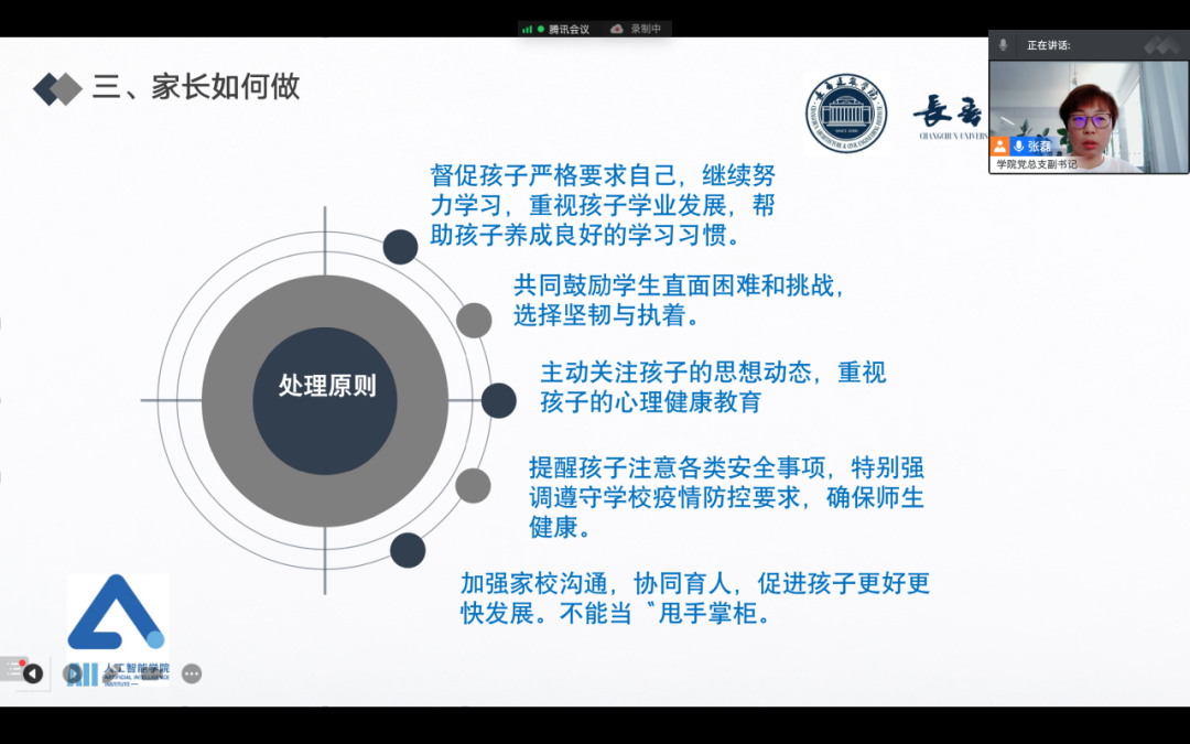 其后,张磊书记为各位家长介绍了公司员工工作情况,并与家长分享了题为“梦想在这里起航,成功在这里开始”的育人理念。她介绍了公司的办学理念,以员工为本,立足员工培养全面发展,把德育放在首位,突出应用型人才创新素质和实践能力的培养。其次,与员工家长分享大学应该怎样学习,她重点从三个方面讲解:一是纠正了普遍存在的“上大学就轻松了”的认识误区;二是如何一手抓学历一手抓职业能力;三是如何提升自我承受能力、自我控制能力以及人际交往能力。最后,她提醒大家,开学季是诈骗的高峰期,各位同学家长们需提高防范意识和自我保护,谨防诈骗,同时也希望各位家长督促孩子严格要求自己,继续努力学习,重视孩子学业发展,帮助孩子养成良好的学习习惯。共同鼓励员工直面困难和挑战,促进孩子更好更快发展,收获精彩的老员工活。