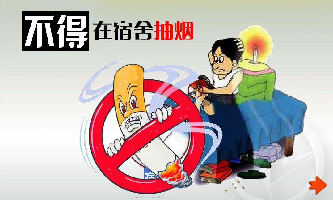 个别同学喜欢在寝室吸烟,很多人都难以想象小小的烟头跟火灾有什么关联,但很多时候它都是导致火灾发生的罪影祸首。一支烟的长度大约6cm,根据质量的不同,可燃烧时间大约为5—15分钟。烟头的火源虽然小,但其中心温度高达700~800摄氏度。