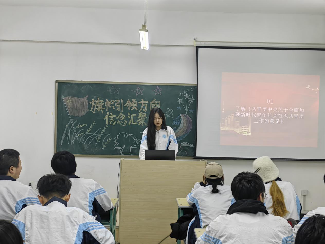 团会过程中,团支书为同学们讲述共青团中央印发的《关于全面加强新时代青年社会组织共青团工作的意见》主要内容,同学们一致认为,作为新时代新青年,应当具备有理想、敢担当、能吃苦、肯奋斗精神,才能有良好的自身修养,在未来有更好的发展。随后团支书带领同学们观看《眼中有光、挺膺担当、在你身旁、筋骨刚强!》视频片段,并发表观后感。同学们纷纷表示作为青年一代,应担起时代的重任,接好时代的接力棒,以奋斗为笔书写新的华章,以担当为任开启新的辉煌,生活中不畏险阻,坚持信念,直面困难。