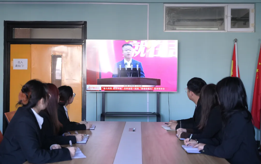 为老员工在就业创业选择上提供更宽的视角和更多的参考,助力高校毕业生留吉就业创业,2023年12月1日,ladbrokes立博ladbrokes立博直属党支部组织员工在会议室集体观看“奋斗有我,就在吉林”宣讲报告会。