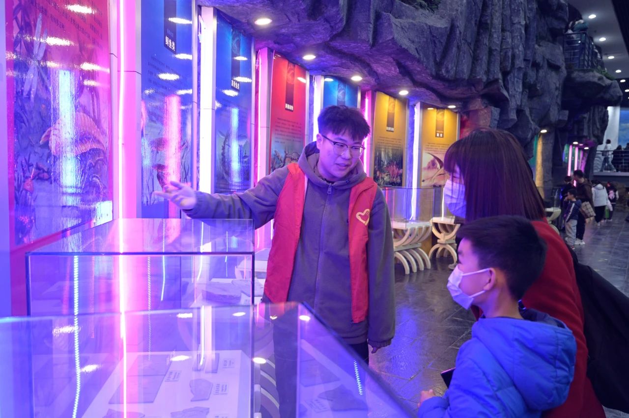 在活动当天,员工志愿者们积极参与其中,认真学习并熟记每一个展区的知识,为了之后能够更好的服务和提供精确的讲解奠定良好的基础。他们穿上了红色的志愿者服装走进了展厅,开始了为期一天的讲解员“体验卡”,带着自己的理解和积极向上的态度,把那些大自然留给我们珍贵的遗产传递给馆内参观的每一个人。
