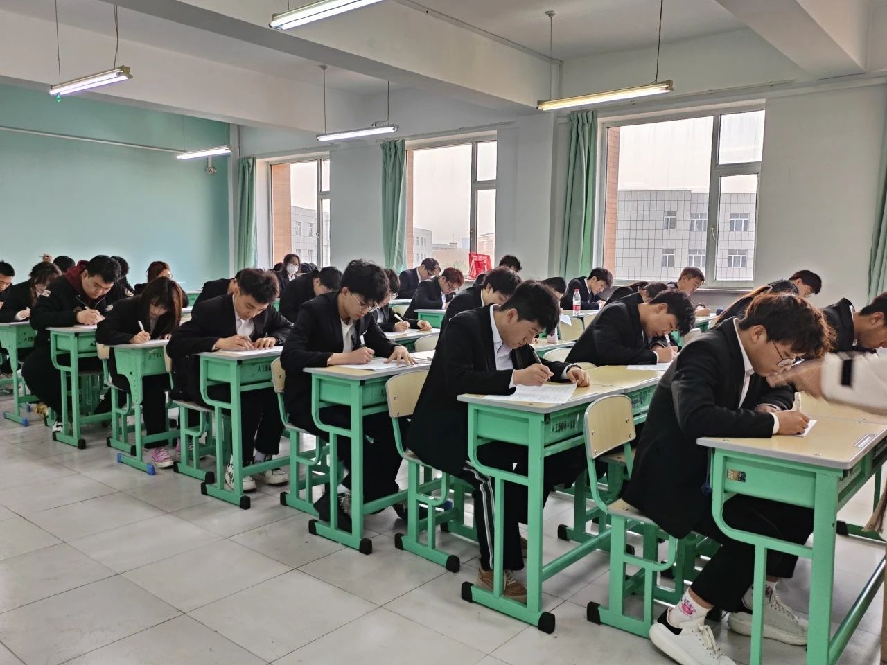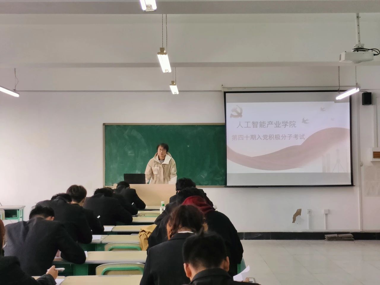 考试前,张磊副书记介绍了考试题型及其注意事项,强调了考生应自觉遵守考场纪律,严禁作弊。考试要求提前入场,按座号就坐。考试期间入党积极分子们认真考试、严谨作答,全神贯注并尽自己所能完成。考试内容意在考察入党积极分子对党史党纲的认识与理解,从而认识到自身差距,督促入党积极分子们更积极的学习党的理论知识,更努力的提高自身政治素养,在深化对党的认知水平的同时,也能加强党性修养,增加爱党热情。此次结业考试是对入党积极分子和发展对象前一阶段集中培训的一次考核,是培养发展党员的必要程序,对保证新党员的质量、提高党员队伍素质具有重要意义。不仅考察了学员对党史、党章、入党流程等基础知识的掌握程度,同时还涉及当前时事政治的相关内容。
