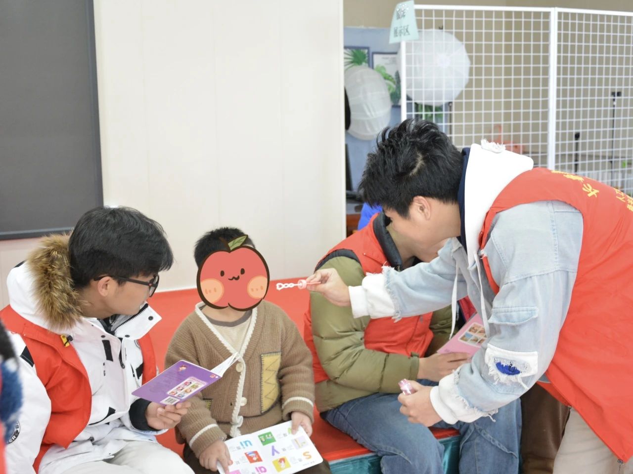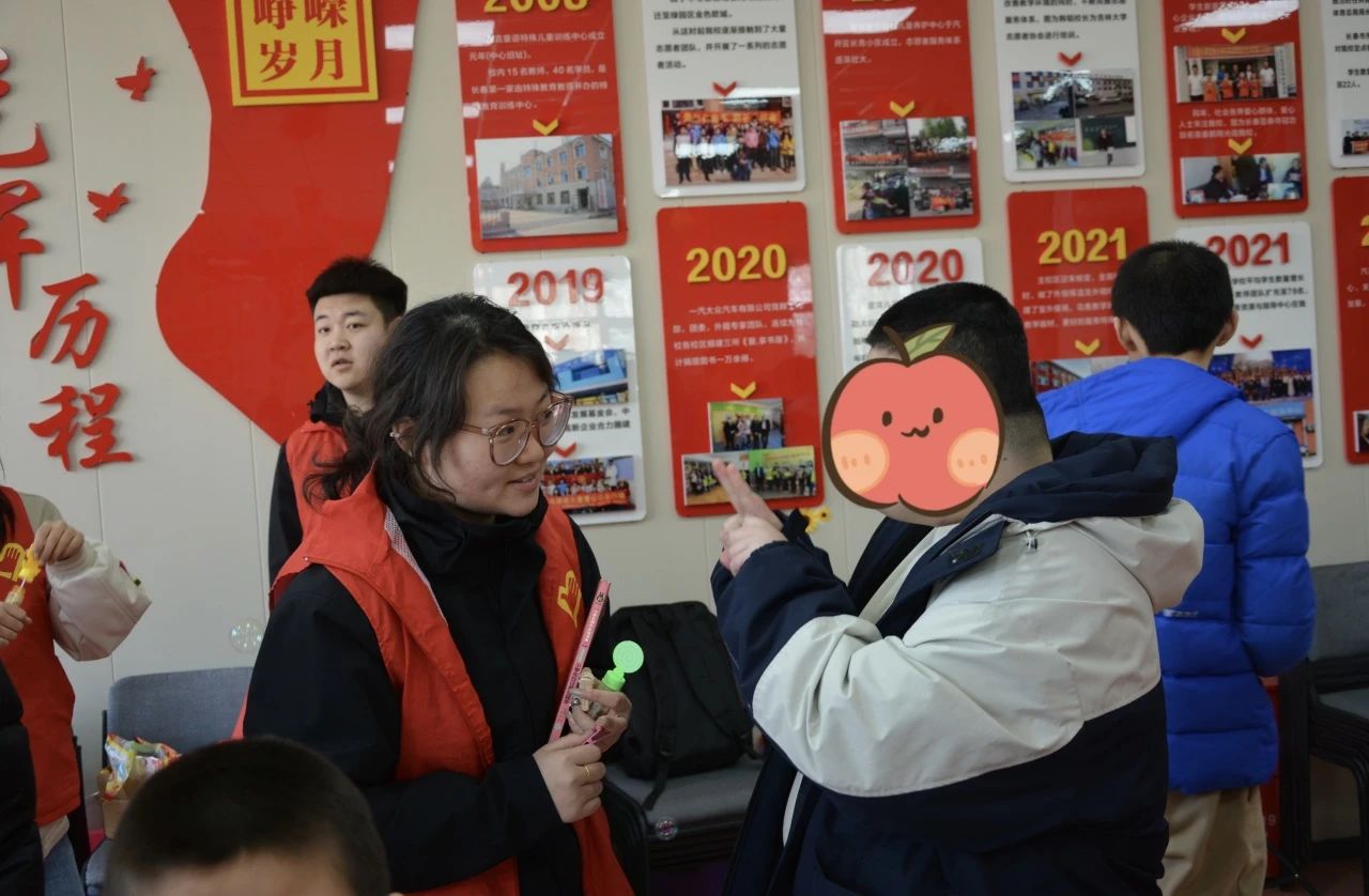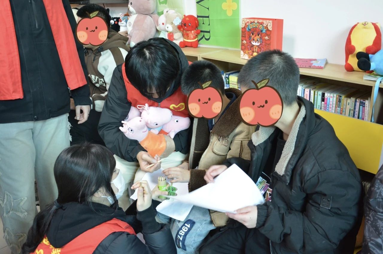 活动开始,老师带领志愿者们前往小朋友们的活动场地,志愿者们将精心准备的零食、玩具带给小朋友。在刚开始的互动过程中,志愿者们不知所措,不知道该怎么和小朋友们接触。但小朋友们对志愿者们亲切的称呼以及他们灿烂的笑容,让志愿者们感受到了小朋友们最真挚的情感。志愿者们和小朋友们一起拍皮球一起做游戏一起完成绘画作品,逐渐变得熟络起来。