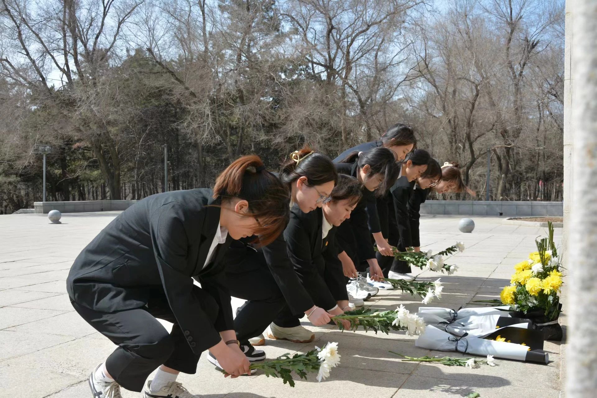 “树高千丈必有根,江流万里必有源”,清明扫墓寄托着人们对革命先辈的追忆哀思,是慎终追远、继志述事、民德归愿的具体表现。一切准备就绪,同学们怀着沉重的心,将对革命先烈的哀思寄托于一朵菊花放于纪念碑前,并且深深鞠躬表达对先烈的敬意。随后,同学们纷纷表示一定会继承革命先烈的光辉遗志,树立远大理想,勤奋学习,掌握报国本领,争取早日成为社会有用之材,时刻准备着为国家、为社会、为家乡贡献自己的智慧和力量。活动结束后,员工干部们在纪念碑前合影留念,拍下了这威严庄重的时刻。