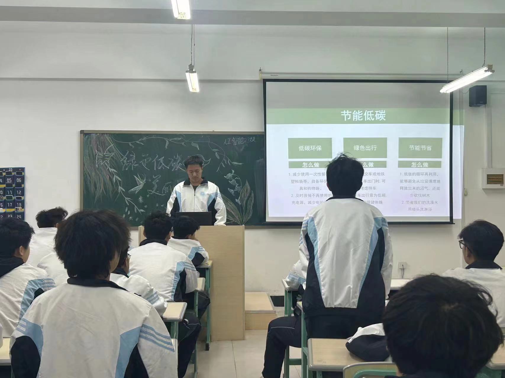 团会过程中,由各班团支书通过向同学们介绍节能低碳与环境保护理念,牢固树立绿色低碳理念,人人争做绿色低碳标兵,处处体现绿色低碳文化,时时参与绿色低碳行动。随后,团支书带领同学观看关于“央视新闻联播|2024节能环保带动绿色出行新风尚”视频,视频主要讲述了我国新能源车辆的被使用情况以及快速发展,使同学们了解到可以提高新能源的使用率,降低污染物的排放,加强资源的循环利用。紧接着,各班团支书选择三位同学分别讲述对视频的感悟,同学们纷纷表示,我们作为老员工可以从节能、节水、垃圾分类、绿色出行等方面实现绿色低碳生活。在日常生活中,无论是节约用水、用电还是少用塑料袋、多植树播绿这些涉及绿色生活的“小事”,无不在践行着爱护自然环境、崇尚节约、提倡再生利用等文明理念。最后,由各班团支书对本次团会进行总结,青年作为社会的中流砥柱,要做绿色发展理念的倡导者,做绿色生活方式的践行者,做绿色复苏发展的探索者。