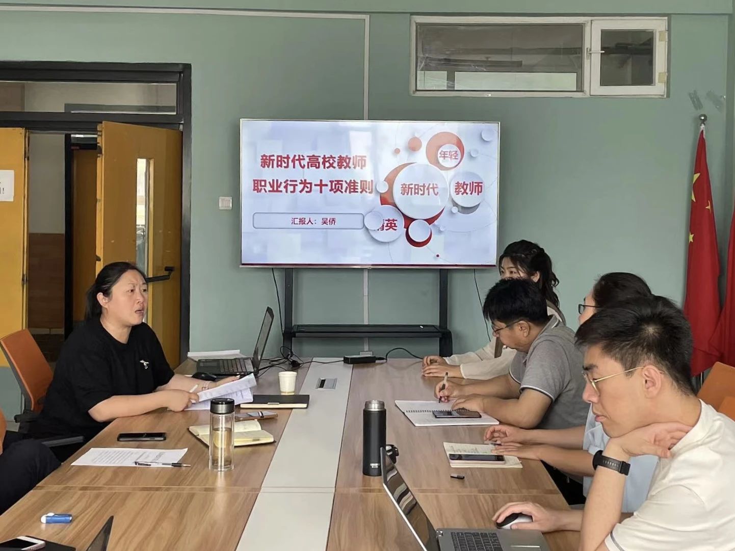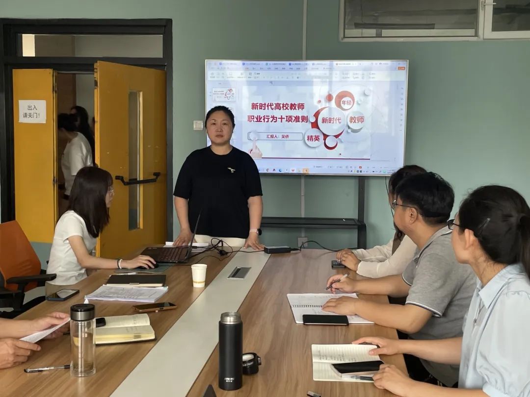 会议开始,吴侨副经理宣读了十项准则并指出《新时代高校教师职业行为十项准则》是新时代对广大教师落实立德树人根本任务提出新的更高要求,有利于进一步增强教师的责任感、使命感、荣誉感,为规范职业行为、明确师德底线指明了方向,并要求大家要认真领会准则精神,做有道德、有底线的好老师。