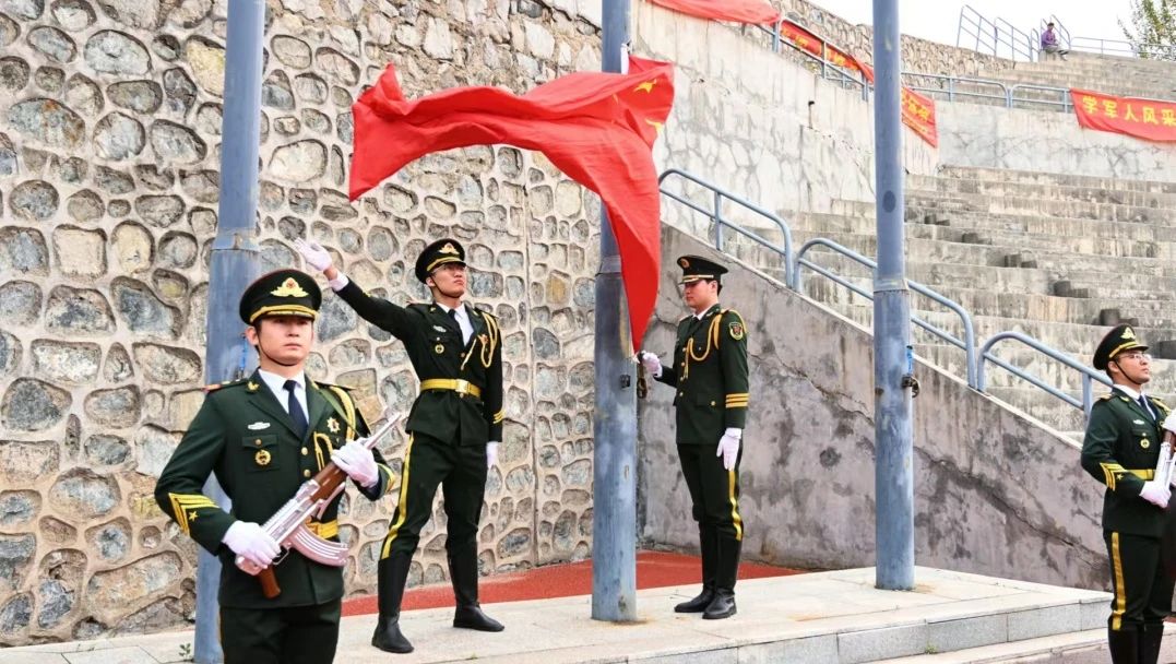 在激越昂扬的歌声伴随下,国护队迈着整齐响亮的步伐,护送着国旗。在全体的注视下,伴随着国歌,国旗缓缓升起。同学们目光灼灼,直视着前方,不畏刺目强光,不畏滚滚热浪铁打营盘流水兵,千言难话军训情。万众期待的军训阅兵仪式正式开始。