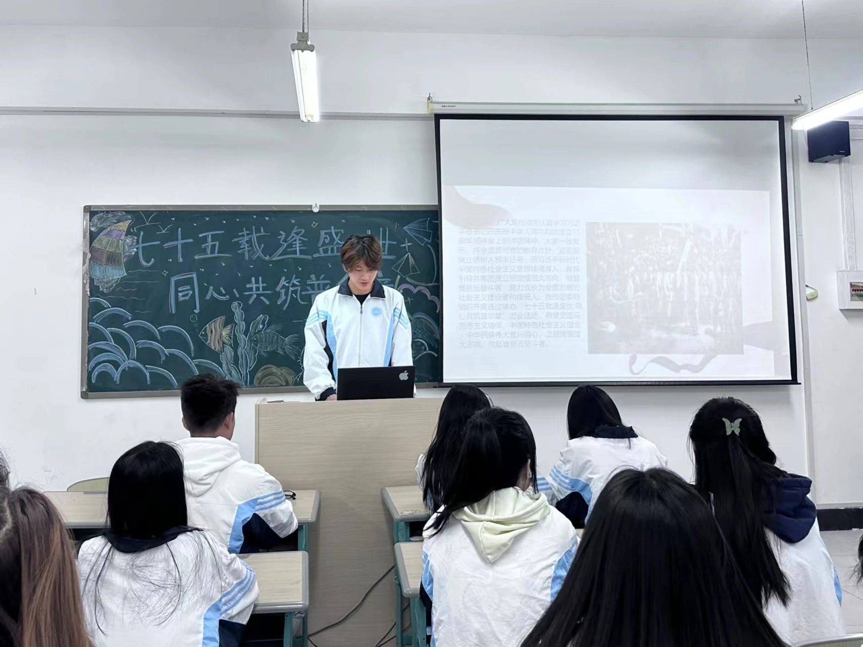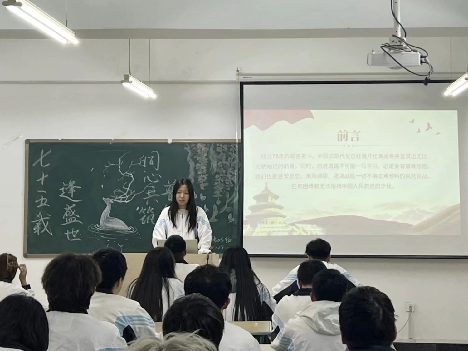 本次主题团日活动带领同学们走入了祖国七十五年的光辉画卷中,点燃了他们心中的爱国烈焰,激发了同学们努力拼搏的决心,让他们在回望历史中汲取了前进的力量,同时引导他们要勇立时代潮头,争做时代先锋,与新时代同向同行、共同前进,勇做走在时代前面的奋进者、开拓者、奉献者。