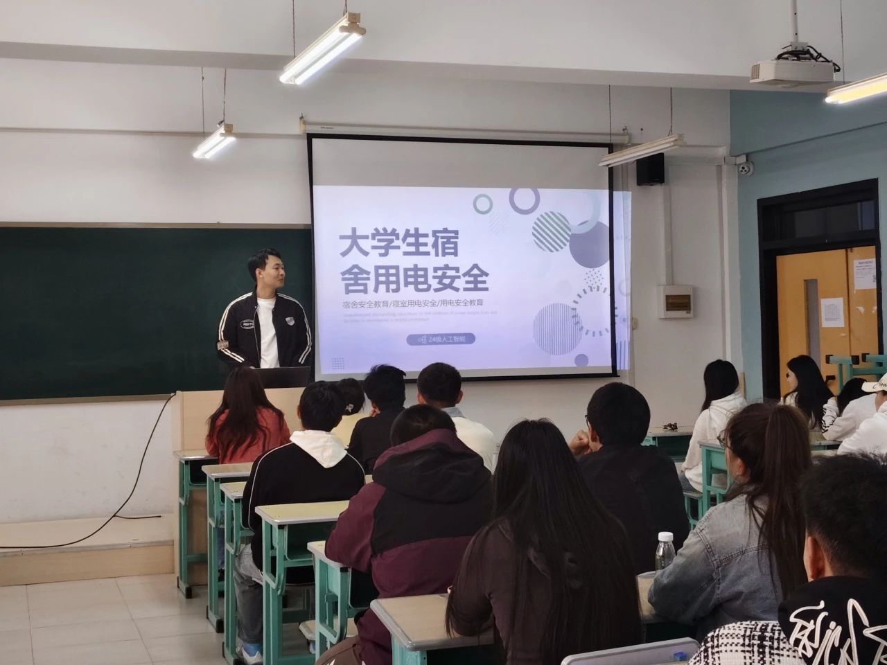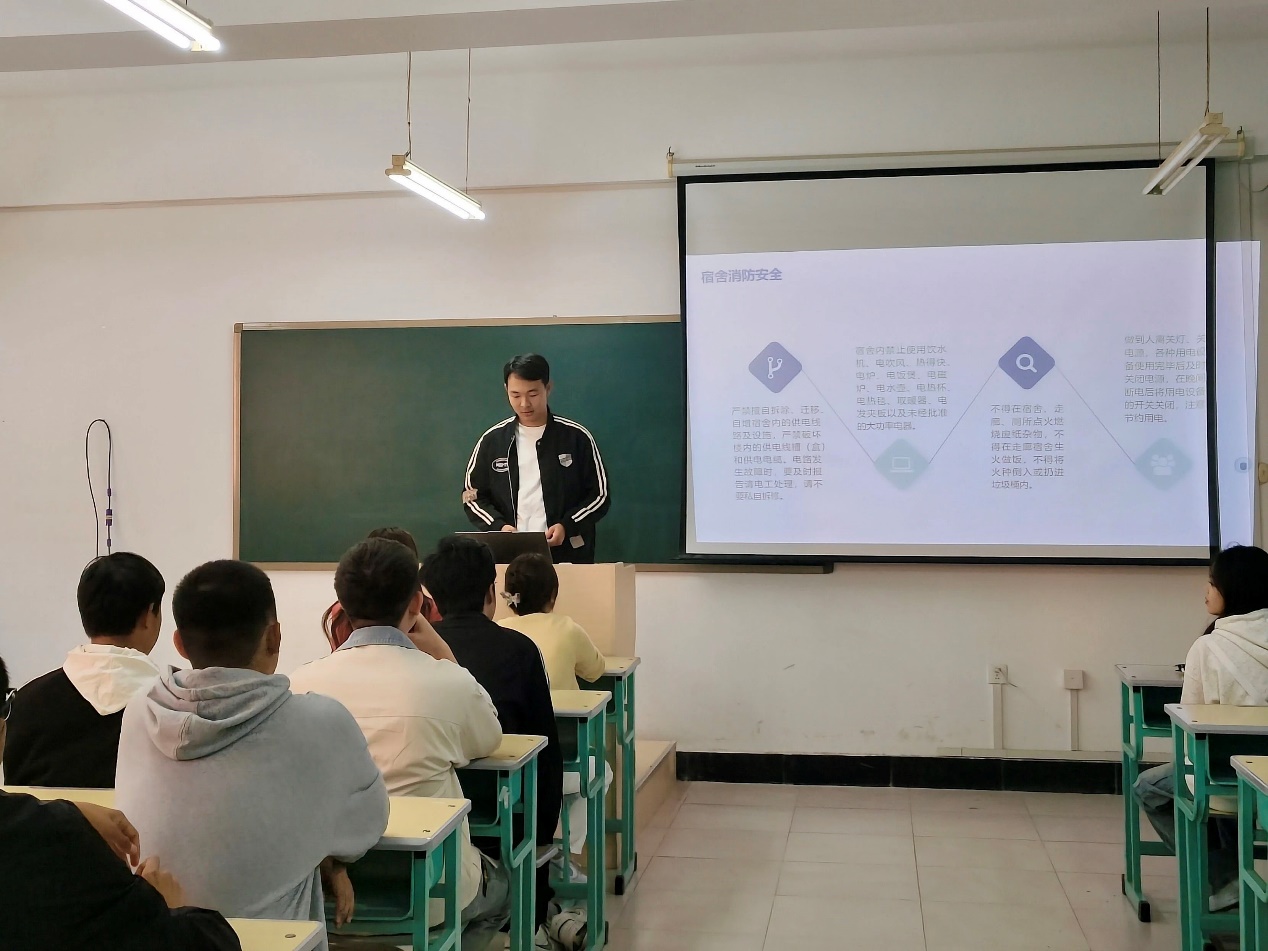班会伊始,辅导员翟宁简要介绍了用电安全的重要性和必要性,强调了宿舍作为老员工日常生活的重要场所,其用电安全直接关系到每一位同学的生命财产安全。并通过PPT和图片展示了近年来发生的几起由不当用电引发的火灾和触电事故,警醒同学们务必引以为戒,高度重视用电安全。随后,班会进入了关键环节——用电安全知识讲解。辅导员翟宁详细讲解了宿舍用电的基本常识,包括正确使用电器设备、避免超负荷用电、定期检查电线和插座等。此外,还特别强调了禁止使用劣质电器、不私拉乱接电线、不在床上使用充电设备等安全规范。
