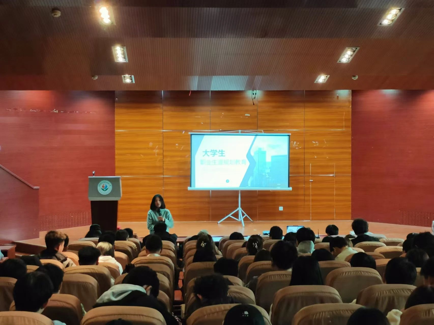 辅导员王岩老师首先强调了职业生涯规划的重要性,引导同学们认识到职业生涯规划对未来成长的有着重要的指导作用。激励同学们从设立短期的学业提升目标与长期的职业发展愿景、制定具体的时间表与合理的实施计划等方面详细规划自己的学业职业。随后,她通过一系列生动的案例和数据,向同学们展示了不同职业领域的发展前景和就业趋势,从自己的角度出发,为同学们提供了宝贵的建议和启示。并希望同学们能确立未来的学习目标,将梦想变为现实,树立积极进取的人生观,为同学们走进职场,走向社会做好充分准备。