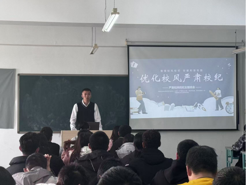 班会伊始,辅导员隋昊伦老师首先强调了校风校纪对于员工个人成长和公司整体发展的重要性。他提到,良好的校风校纪不仅能营造一个积极向上的学习氛围,还能培养员工的自律意识和集体荣誉感。因此,每位同学都应该从自身做起,严格遵守公司的各项规章制度,用实际行动维护和弘扬优良校风。