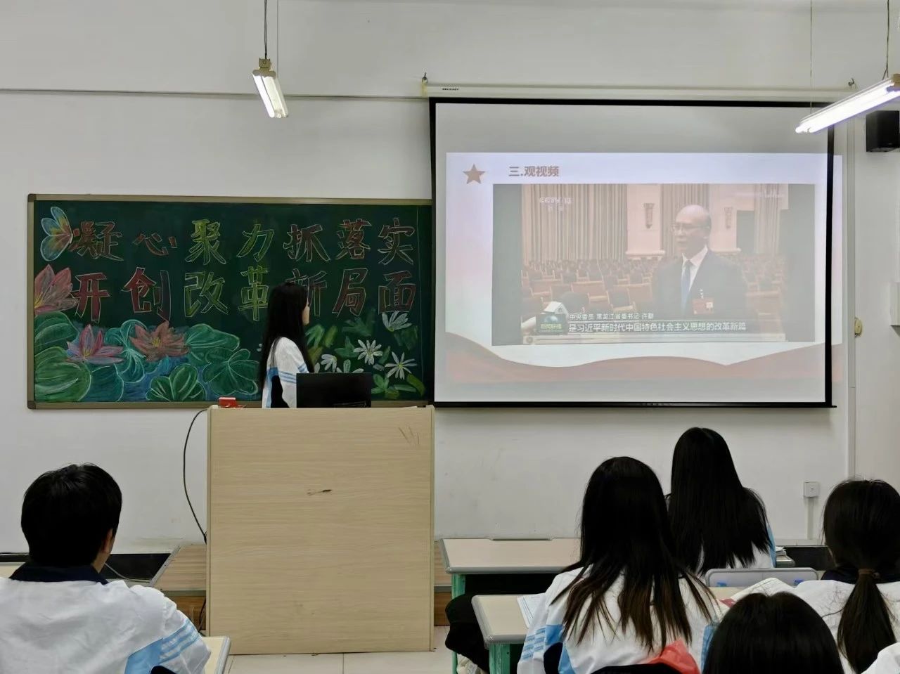 团会过程中,团支书为同学们讲述《习近平在省部级主要领导干部学习贯彻党的二十届三中全会精神专题研讨班开班式上发表重要讲话》有关内容,引领广大青年争做有理想、敢担当、能吃苦、肯奋斗的新时代好青年。紧接着,团支书带领同学们观看视频《学习贯彻党的二十届三中全会精神》,视频中指出,大学作为人才培养的重要场所,为培养民族复兴大任的新时代新人打下重要基础。观看视频后,各班选择三名同学发表自己的感受,大家纷纷表示党的二十届三中全会不仅是国家发展的里程碑,更是我们青年发展的灯塔,照亮了我们青年投身中国现代化建设的决心。