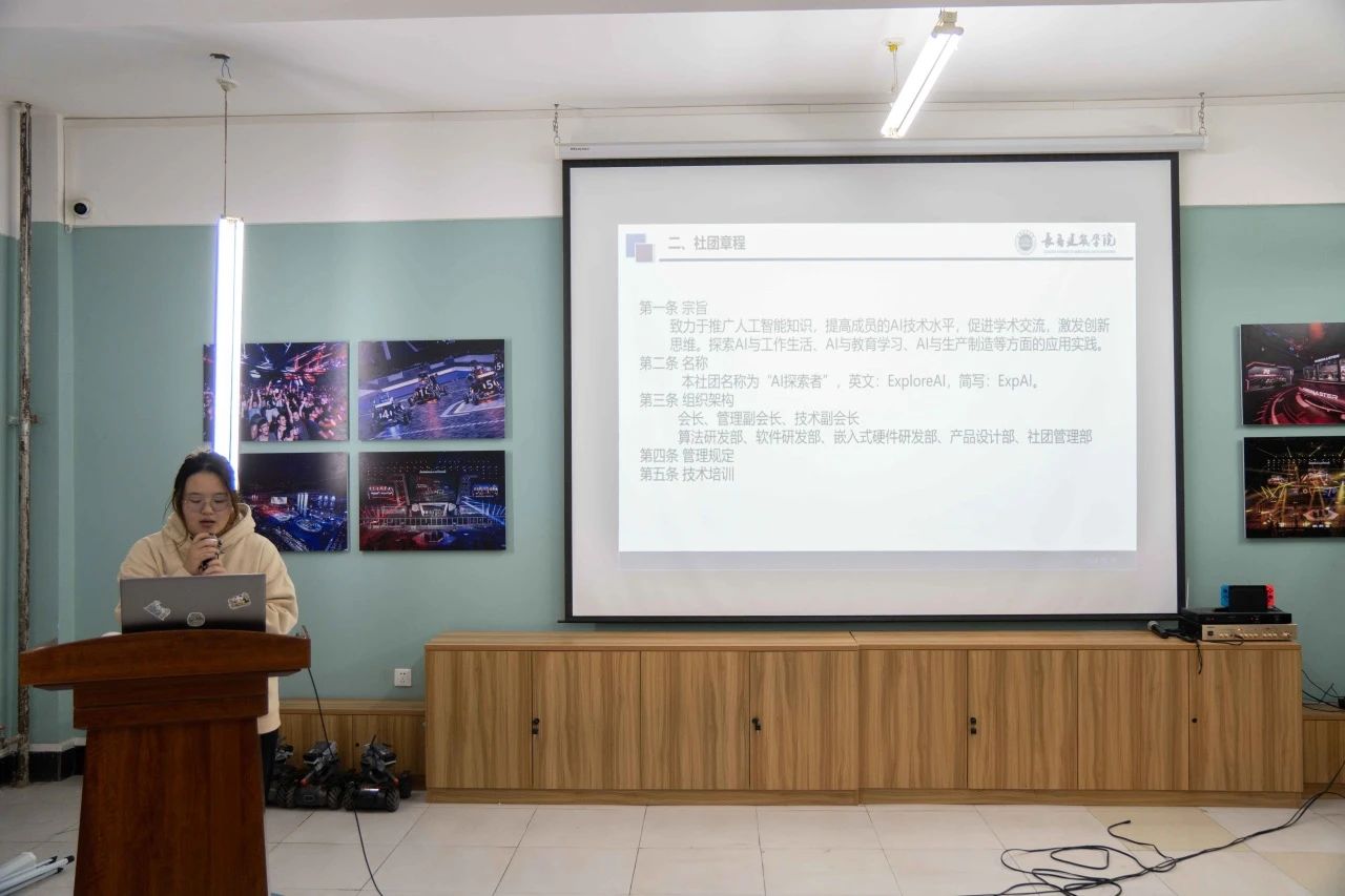 大会由智慧与激情并存的宁炳武老师主持,他以饱满的热情和深邃的洞察,为社团的成立大会拉开了序幕。宁老师不仅介绍了社团的组织架构,还提出了“智启未来,探索无限”的社团精神,激励着每一位成员勇攀科技高峰,成为新时代的探索者与创造者。其后,社长赵银君讲述了社团的宗旨性质以及章程,副社长李长健、郑佳琦分别介绍了社团内的管理制度和社团成立之后的奋斗方向以及目标。