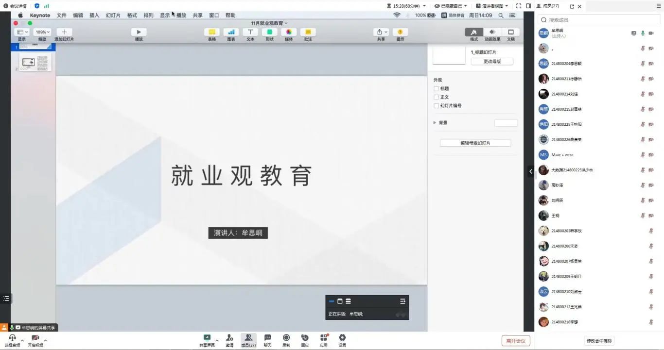 班会上,牟思峒老师首先对当前的就业形势进行了深入剖析,通过数据和案例向同学们展示了当前就业市场的严峻性。她指出,随着高校毕业生人数的逐年增加,就业竞争愈发激烈,同学们需要认清这一现实,做好充分的心理准备。