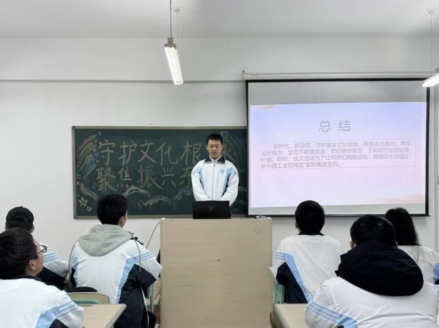 在各班团支书的认真带领下,同学们深刻领略到家乡文化的源远流长和博大精深。无论是精美的手工艺品背后匠人匠心的坚守,还是热闹节庆活动中蕴含的团圆祈福的美好愿景,亦或是代代相传的民间故事所彰显的质朴价值观,都如同一束束光,照亮了同学们对家乡的认知,激发起内心深处对家乡文化的热爱与自豪,进而更坚定了守护家乡文化根脉、传承和弘扬这些珍贵文化遗产的决心。同时也积极发言参与,共同开启了一场“探寻家乡文化宝藏”之旅。