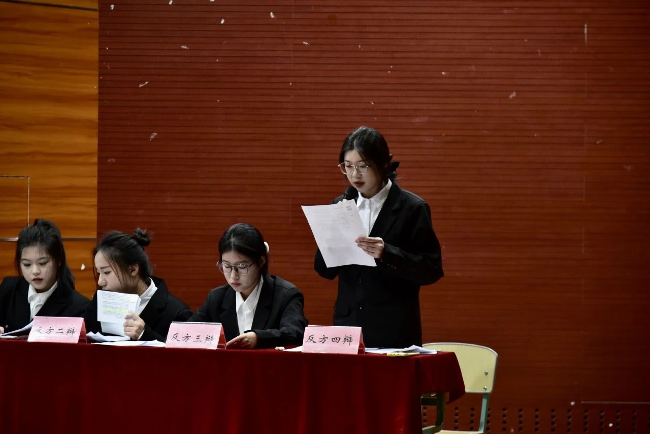 自由辩论环节中,双方辩手,进行着如同一场激烈的智力风暴,你来我往,言辞如剑,思维的火花在碰撞中绽放出绚烂的光彩。最后总结陈词时,双方辩手概括全面,对整场辩论进行了系统性的梳理,补齐己方漏洞又突出升华了主题,为各自团队的辩论画有力的句号。