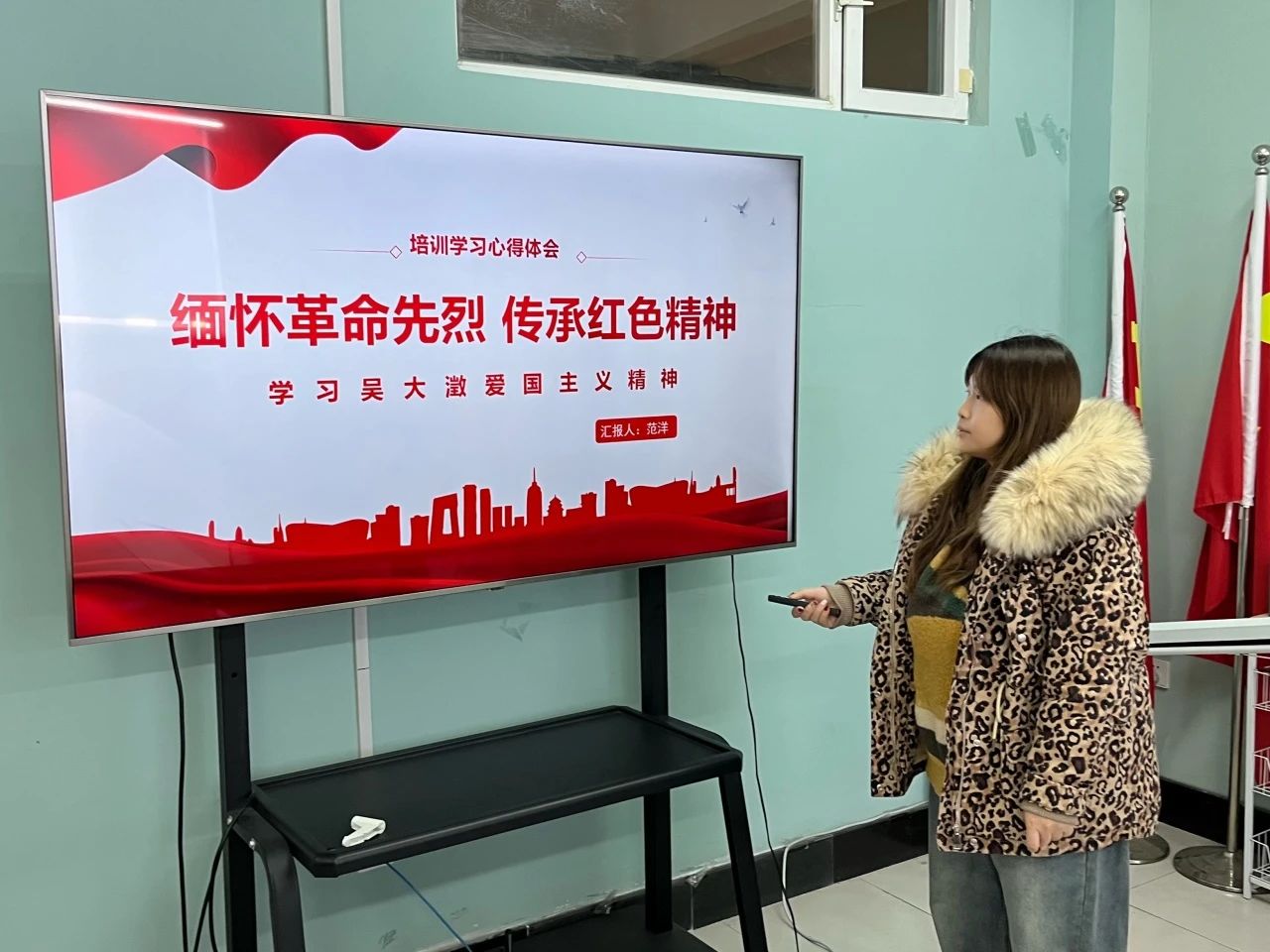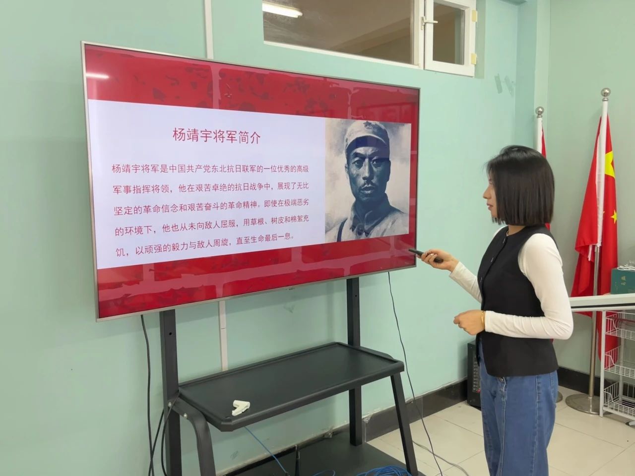 辅导员王岩老师围绕着杨靖宇将军的生平和精神展开分享,探讨了杨靖宇将军在艰苦卓绝的抗日战争中,是如何展现出的坚定革命信念和艰苦奋斗精神的。她希望能以杨靖宇精神为榜样,更好引导员工成为有责任感和使命感的新时代青年。