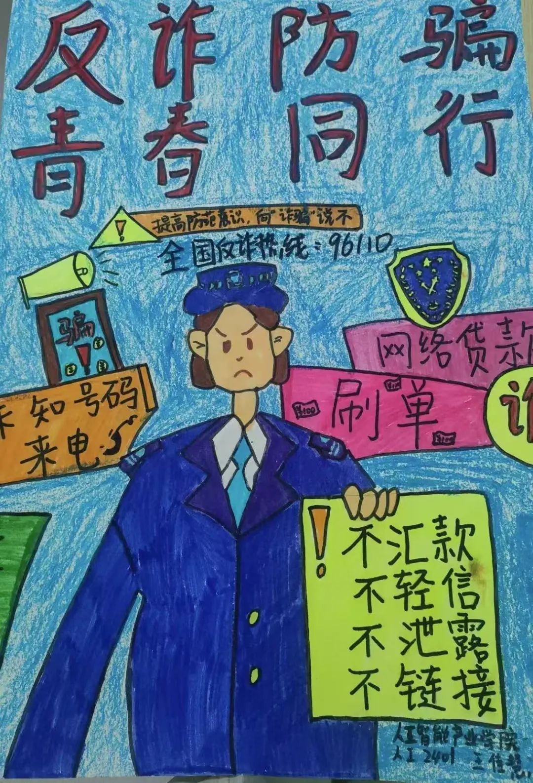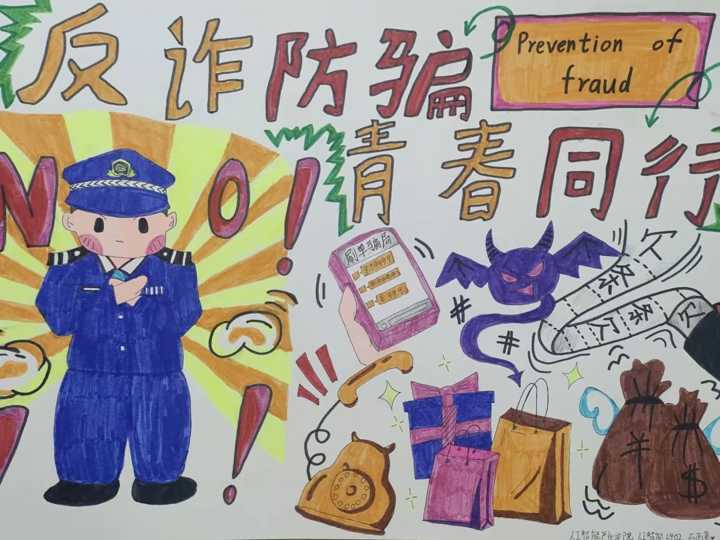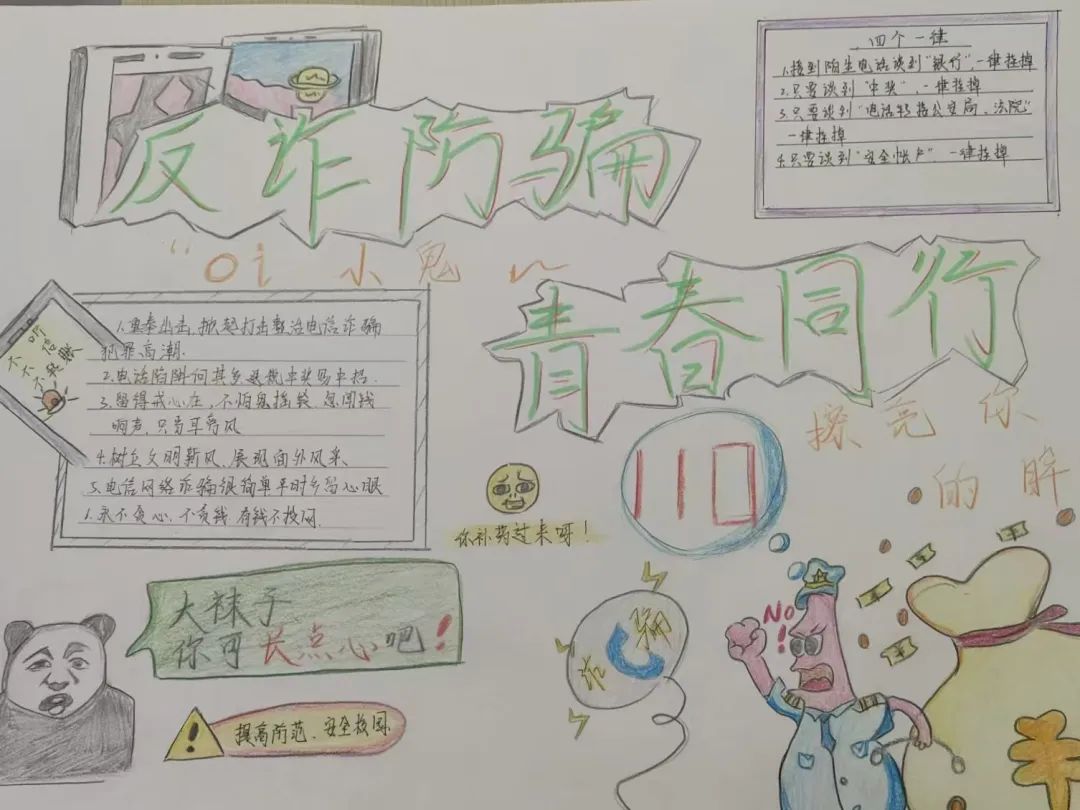 通过这次活动同学们们学会了识别和应对电信诈骗的方法和技巧,增强了自身的防骗能力。同时绘画作品丰富校园文化生活,宣传了积极健康的价值观,为老员工的课余生活增添色彩。