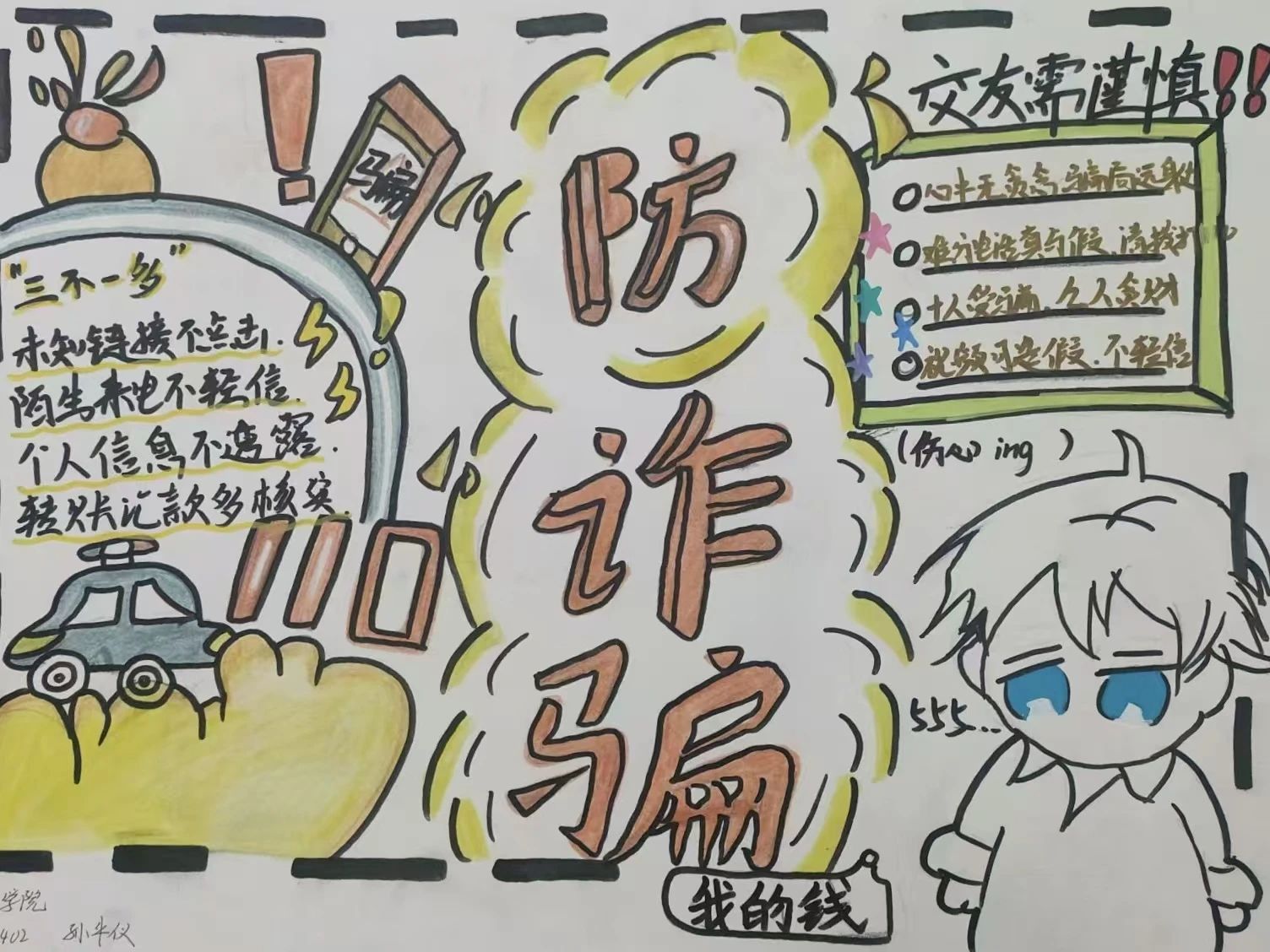 活动发出后,同学们以绘画的方式来警示员工警惕不法分子的诈骗手段,避免被花言巧语迷惑和小利骗局诱惑。本次活动获奖员工如下: