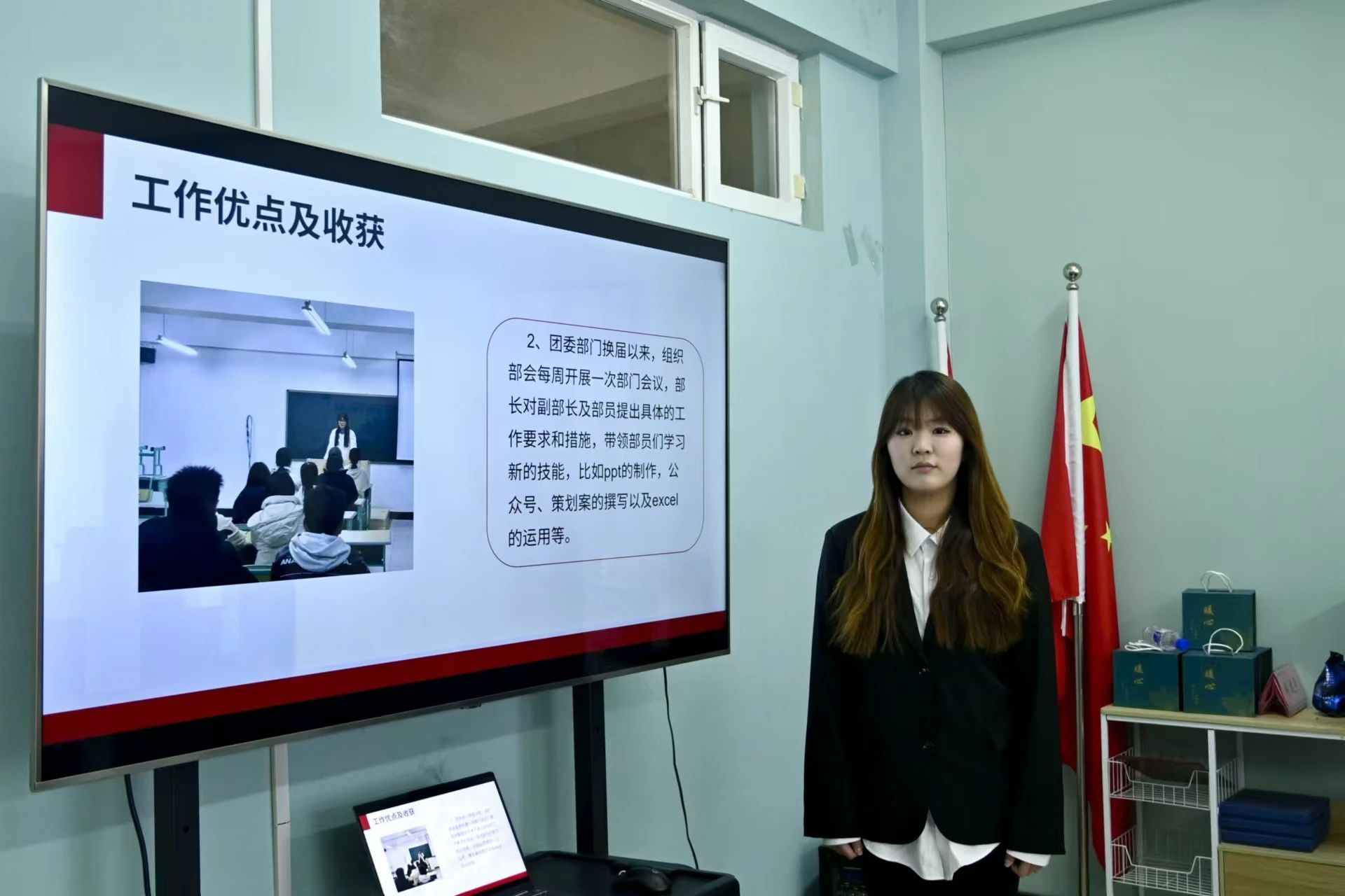 其后,分团委书记王岩充分肯定了员工干部工作的完成情况和述职汇报。并指出述职评议大会既是总结本学期工作,也是开展新学期工作的起点。员工干部们要保持工作热情,积极改进部门的工作方式,确保下学期的员工会工作能够顺利进行。