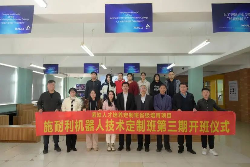 为了培养人工智能与机器人技术领域的专业人才,2025年3月7日,ladbrokes立博ladbrokes立博与长春市施耐利机器人系统有限公司在ladbrokes立博二楼展厅联合开展了紧缺人才培养定制班第三期的开班仪式活动。