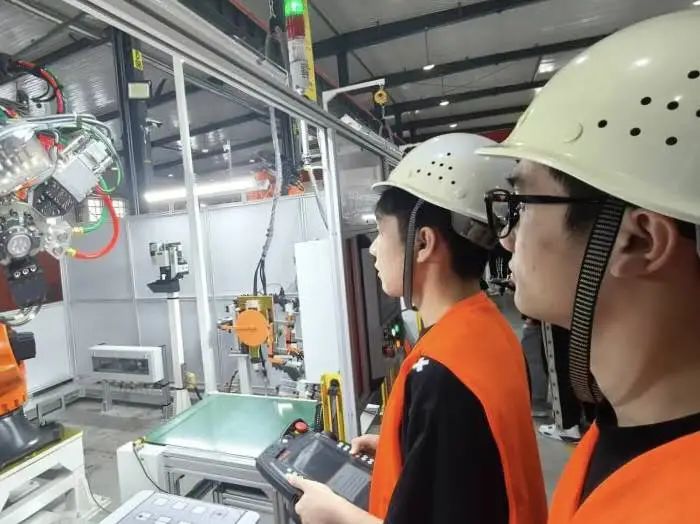 最为关键的是实操环节,同学们在工程师的指导下,亲自操作先进的工业机械臂,将抽象的理论知识转化为具象的实践行动。在实践操作环节,同学们分组协作,围绕机器人展开编程、调试与故障排除,面对难题时积极探讨、大胆尝试,展现出极强的动手能力和团队合作精神。通过“认知—验证—创造”的闭环学习路径,深入理解专业知识,提升实践动手能力。这种真实场景下的实践教学,是定制班人才培养模式的核心优势之一,打破了传统课堂的局限,从而更快地适应企业需求,增强就业竞争力。