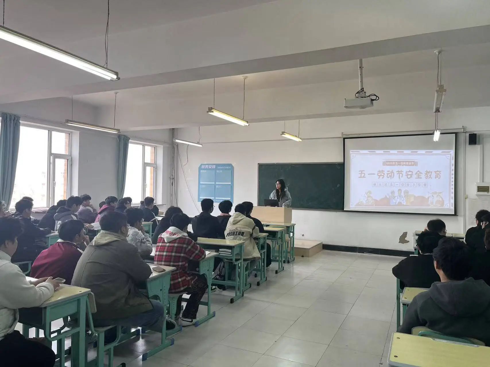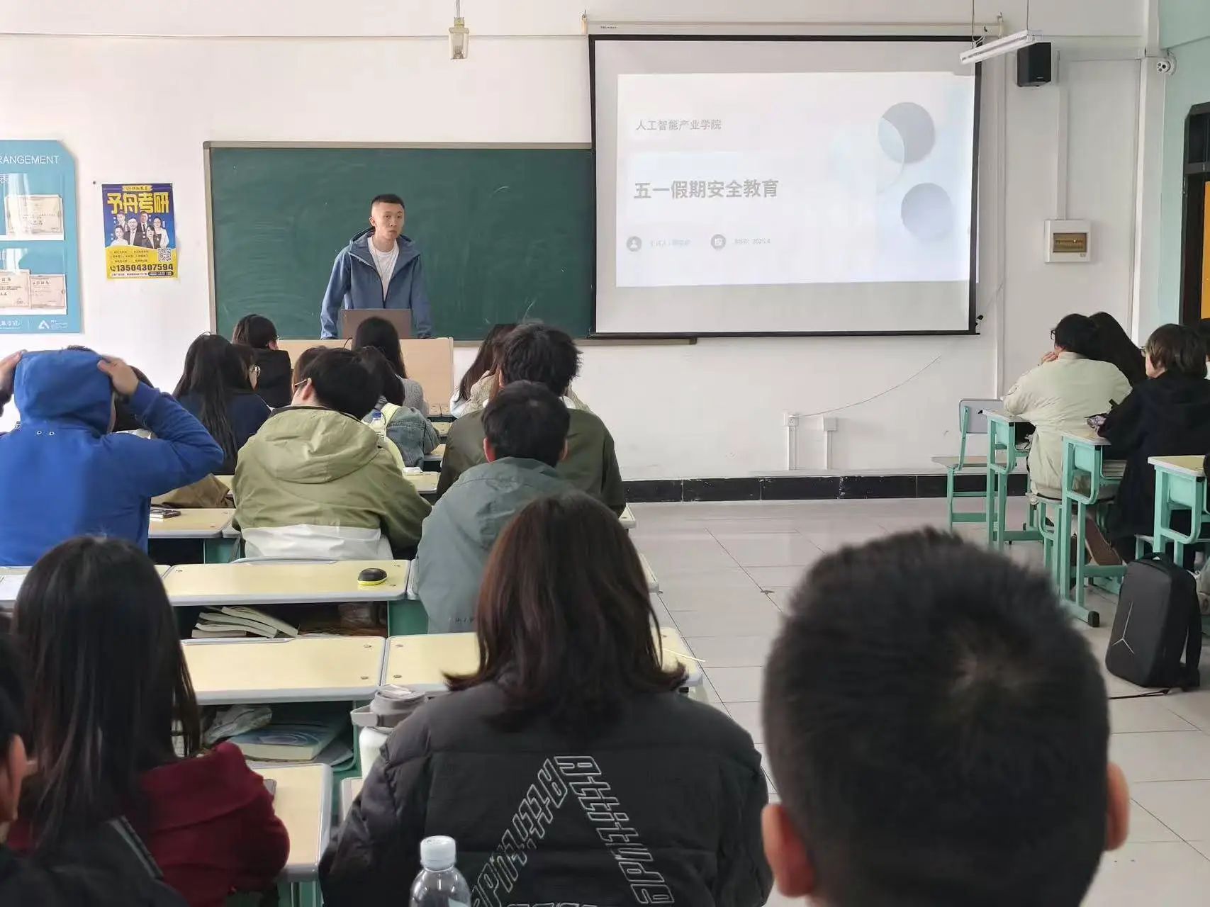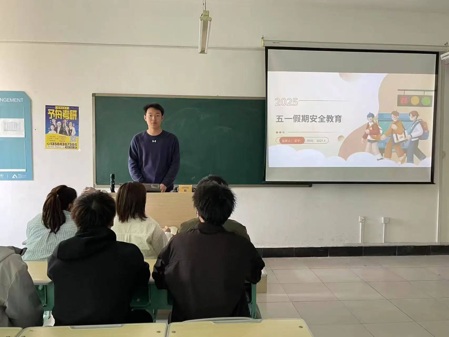 各年级辅导员针对假期管理,重点强调全体同学必须严格遵守返校时间,杜绝迟到、旷课、违规晚归等行为,确保假期结束后能快速回归校园学习生活秩序。随后,各年级辅导员系统讲解假期安全重点内容。在出行安全方面,结合近期道路交通事故,提醒同学们选择正规交通工具,遵守交通规则;面对新型诈骗手段,以AI换脸诈骗、虚假网购退款等真实案件为例,传授识别技巧和防范方法;同时倡导大家文明出行、理性消费,筑牢假期安全防线。最后,辅导员们鼓励同学们珍惜放假前的学习时间,保持课堂专注度,合理规划复习计划,以积极的学习状态迎接假期和后续课程,同学们纷纷表示会将安全知识牢记于心,落实到行动中,平安度过五一假期。