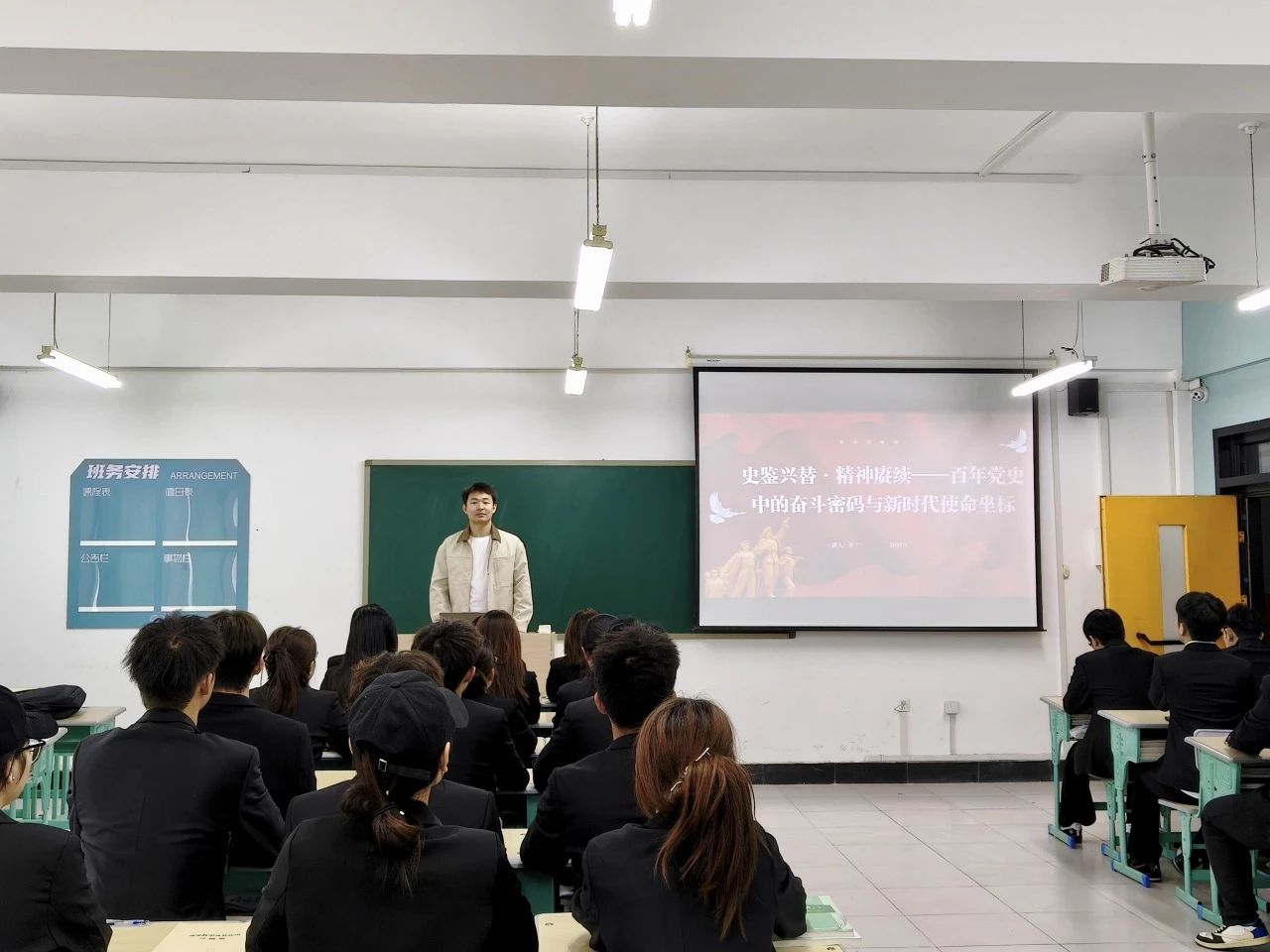 翟宁导员强调百年党史是共产党人砥砺前行的"精神富矿",入党积极分子应以史为鉴,深入挖掘党在革命、建设、改革历程中积淀的奋斗密码,深刻理解"为中国人民谋幸福,为中华民族谋复兴"的初心使命。针对新时代青年的使命担当,翟宁导员进一步阐释,要求学员以党史为镜,坚持历史学习与现实行动有机统一,深刻把握党在不同历史时期形成的宝贵经验,在日常学习生活中主动传承红色基因、弘扬奋斗精神、践行时代使命。最后,翟宁导员希望大家将个人追求融入党和人民的事业,把党史学习成果转化为“学思用贯通、知信行统一”的实际行动,以“越是艰险越向前”的奋斗姿态,在服务群众、岗位实践中彰显入党积极分子的先锋本色,努力成长为政治坚定、作风过硬、本领突出的合格党员后备军,为党和国家事业发展注入青春动能。