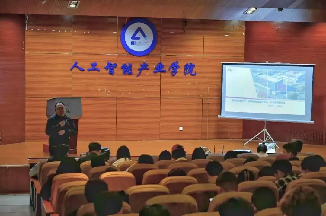讲座开始,韩昊天经理首先分析了当前国家产业转型现状,指出从制造迈向“智造”已成为必然,意味着同学们的职业选择方向正随着产业结构的调整而不断变化,需要同学们实时关注就业趋势。同时,他表示当前同学们学习内容不能够完全满足企业需求,局限于学过而非应用,应该熟悉多种技术框架和项目实践应用,具备良好沟通协作和问题解决能力,积极主动求职,合理应对就业冲突。