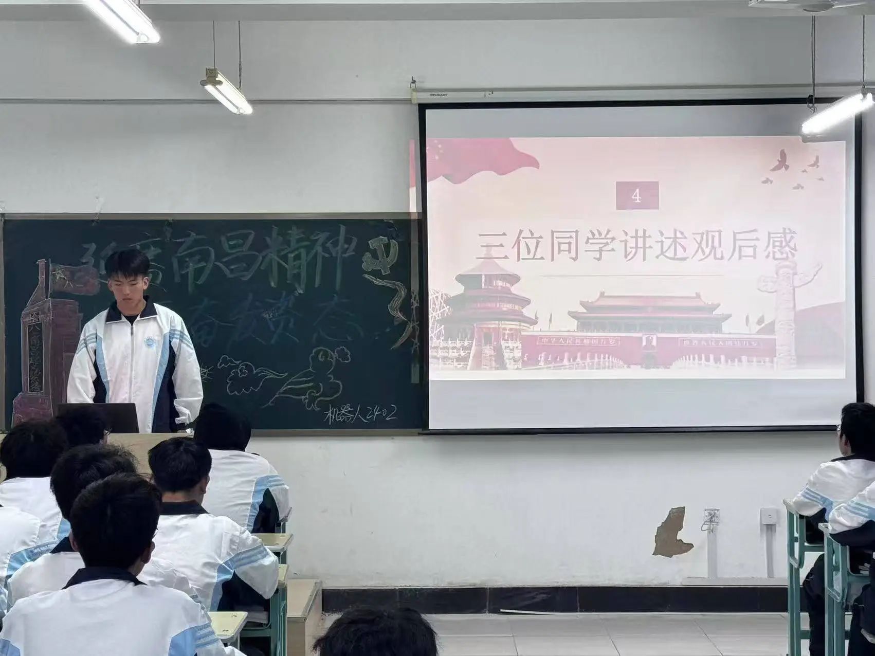 随后,各班团支书组织本班同学观看了南昌起义的相关视频。起义的激烈战斗场景、革命先辈们无畏的身影,让同学们的内心久久不能平静。革命历史不再仅仅是书本上的文字,而是化作一幅幅生动的画面、一段段激昂的话语,深深烙印在同学们的心中。同学们被革命先辈们的英勇事迹所打动,并对自身责任的进行了深刻思考,汲取了前进的智慧和力量。