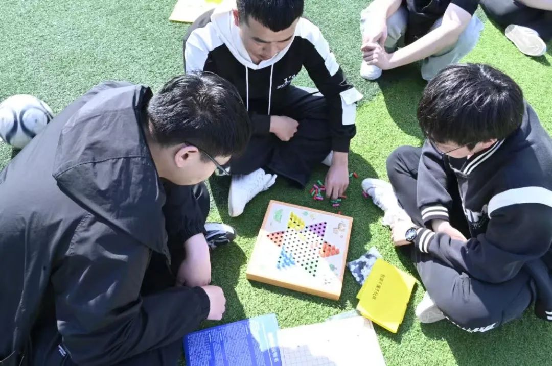 集体活动结束后,大家自由进行选择活动项目。现场为大家准备了五子棋和跳棋,五子棋黑白交错,对弈时需布局、阻拦,能够锻炼同学们的专注力和逻辑思维能力;跳棋棋子灵动,通过借子跳跃行进,讲究路线规划,有助于培养同学们的全局意识与应变能力。二者兼具策略与趣味,无论是独立思考,还是与友对弈,都能够使同学们在娱乐中实现思维能力的提升。