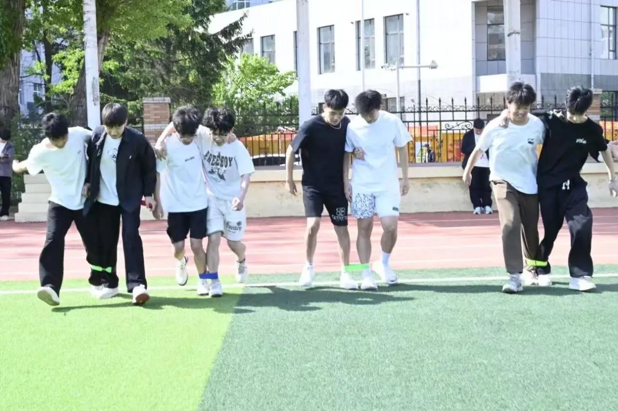 活动开始,首先进行的是经典又趣味十足的两人三足比赛。同学们自由组队,每队两人,四队为一组,将相邻的脚绑在一起,先达到终点的队伍获胜。比赛过程中,需要同学们不断调整步伐、相互鼓励、相互配合,使同学们深刻体会到团队合作的重要性,团队意识也在并肩作战中悄然增强。
