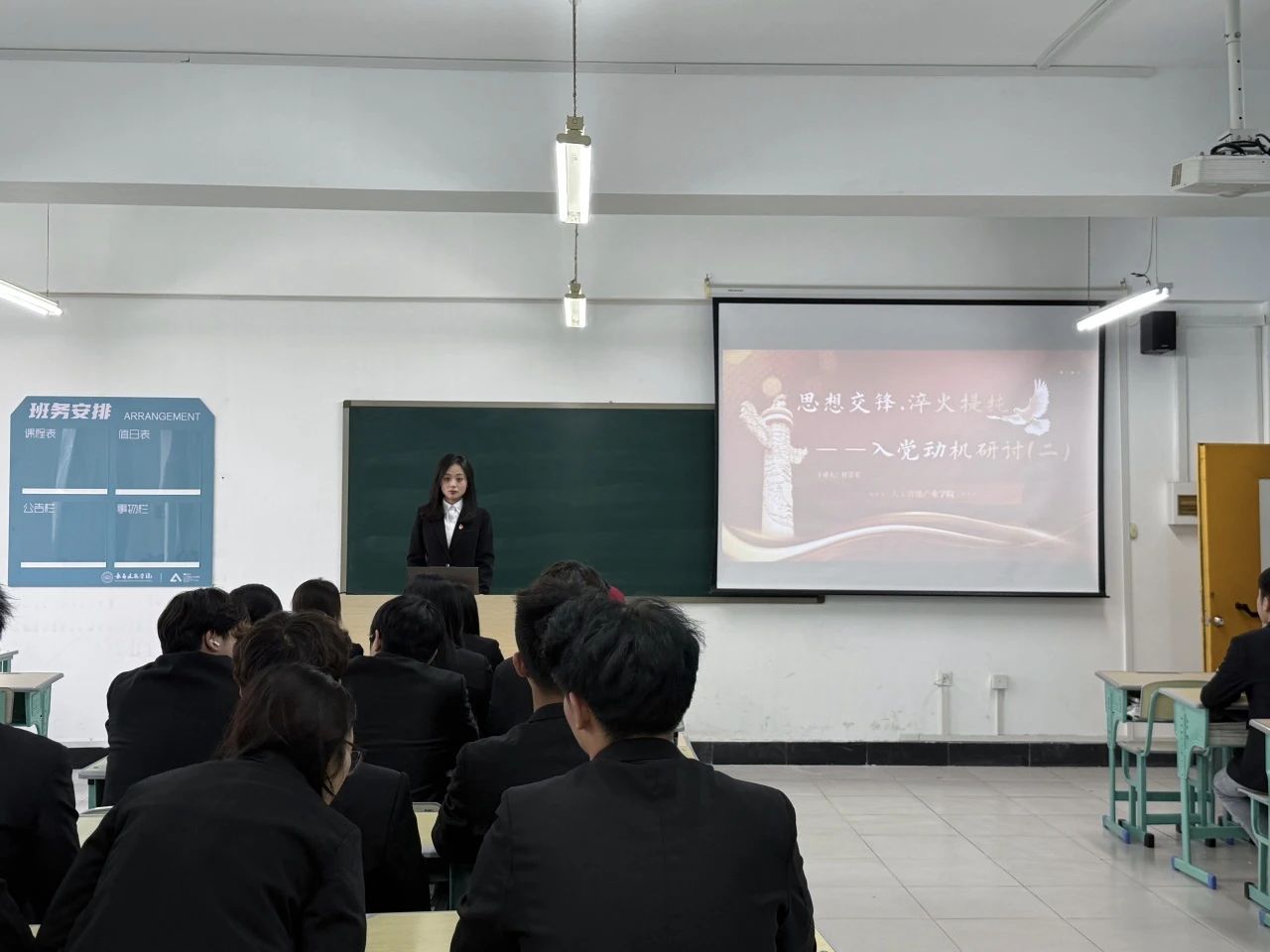 在专题研讨会上,杜芳芳同学以集体观影《八佰》中战士们舍生忘死的片段为切入点,向全体学员深入阐释了本次研讨的核心意义。她着重强调,入党动机是共产党人安身立命的根本,正如影片中战士们用血肉之躯捍卫信仰,当代青年唯有筑牢信仰之基、补足精神之钙,才能在复杂多变的时代浪潮中把准政治方向。随后,围绕“如何淬炼纯粹入党动机”“怎样在日常点滴中践行初心使命”等议题,学员们结合观影感悟与自身经历展开热烈讨论,分享了对党的宗旨的深刻理解与入党初心的动态思考。学员们纷纷表示,要以影片中革命先辈为榜样,将爱国情怀转化为践行使命的实际行动,争取早日成为一名信仰坚定、担当有为的共产党员。