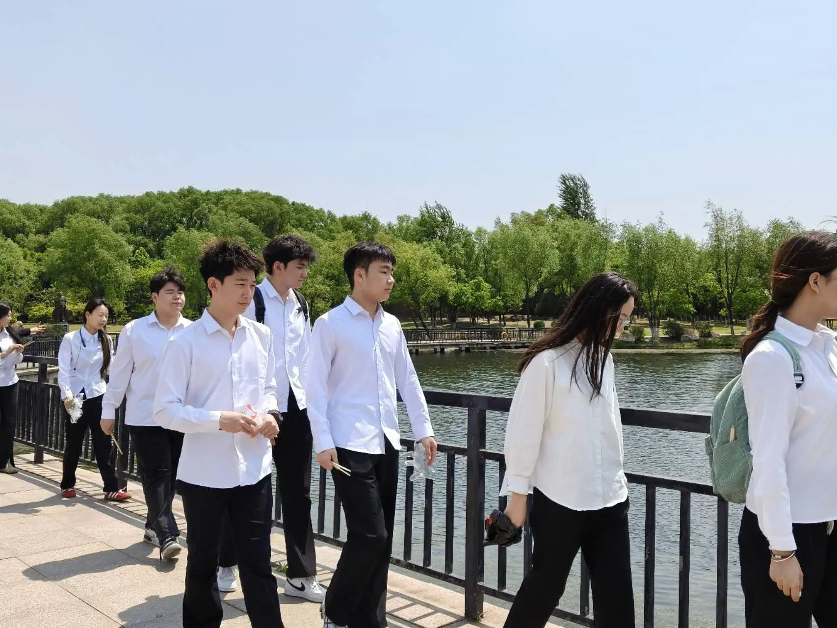 健步走结束后,同学们迅速转换角色,化身环境守护者。大家手持垃圾袋、夹子等工具,分组对公园内的步道、草坪、湖边等区域进行细致的清理。他们不怕脏、不怕累,弯腰捡拾废纸、塑料袋、烟头等垃圾,不放过任何一个卫生死角。同学们用汗水诠释了“劳动创造美好”的深刻内涵,也让“劳动最光荣”的理念在实践中熠熠生辉。