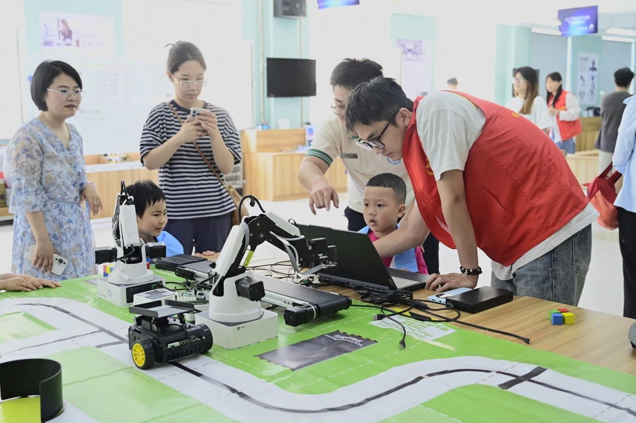 随后,孩子们来到了公司的互动体验区,亲自动手操作智能机器人、体验虚拟现实技术等。在极光青年志愿者协会的志愿者们的耐心指导下,孩子们不仅学会了如何与机器人进行简单对话,还通过代码控制机器人跳舞,体验了科技乐趣。