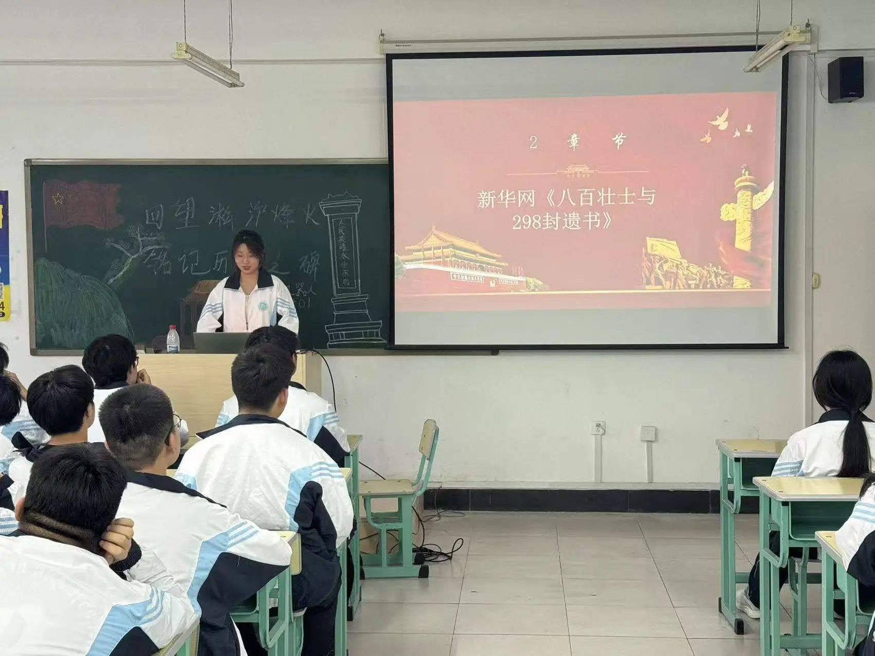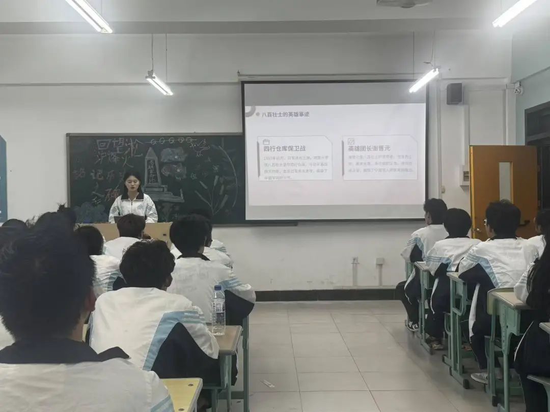 在讲述过程中,团支书们强调了淞沪战役中涌现出的无数英雄事迹。从坚守四行仓库的“八百壮士”,到浴血奋战在宝山、罗店等地的将士们,他们的英勇无畏,让同学们深深感动,也更加珍惜今天来之不易的和平生活。交流分享环节。同学们纷纷发言,分享自己理解与感悟。有的同学被英雄们的精神所感动,表示要在面对困难和挑战时,要坚定信念,勇往直前;有的同学则从历史中汲取了智慧与勇气,认为面对困难与挑战时,我们要坚定信念、勇往直前。